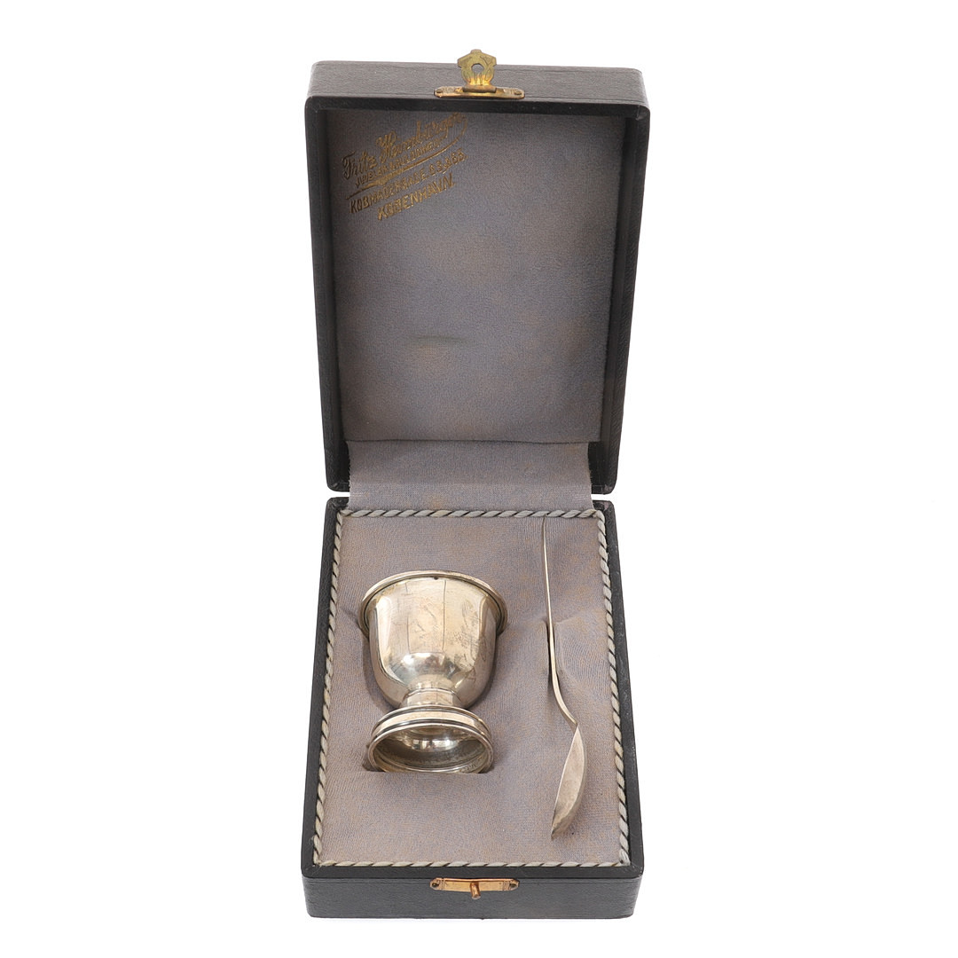 2857333. EIERBECHER UND LÖFFEL AUS DÄNISCHEM SILBER.
