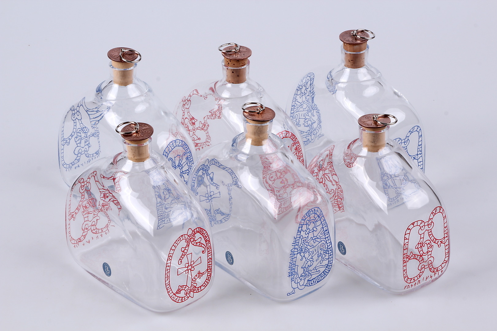 286147. BRÄNNVINSKARAFER, 6-tlg. Lindshammar, 1900.