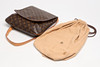 Umhängetasche aus Canvas mit Monogrammmuster und Kernleder. Verstellbarer Schultergurt. Innenraum mit zwei offenen Seitenfächern und Aufhänger für Schlüsselring. Innen markiert mit LOUIS VUITTON PARIS, hergestellt in Frankreich, TH0076. Inklusive Staubbeutel. Maße ca. 34x32x10 cm.
