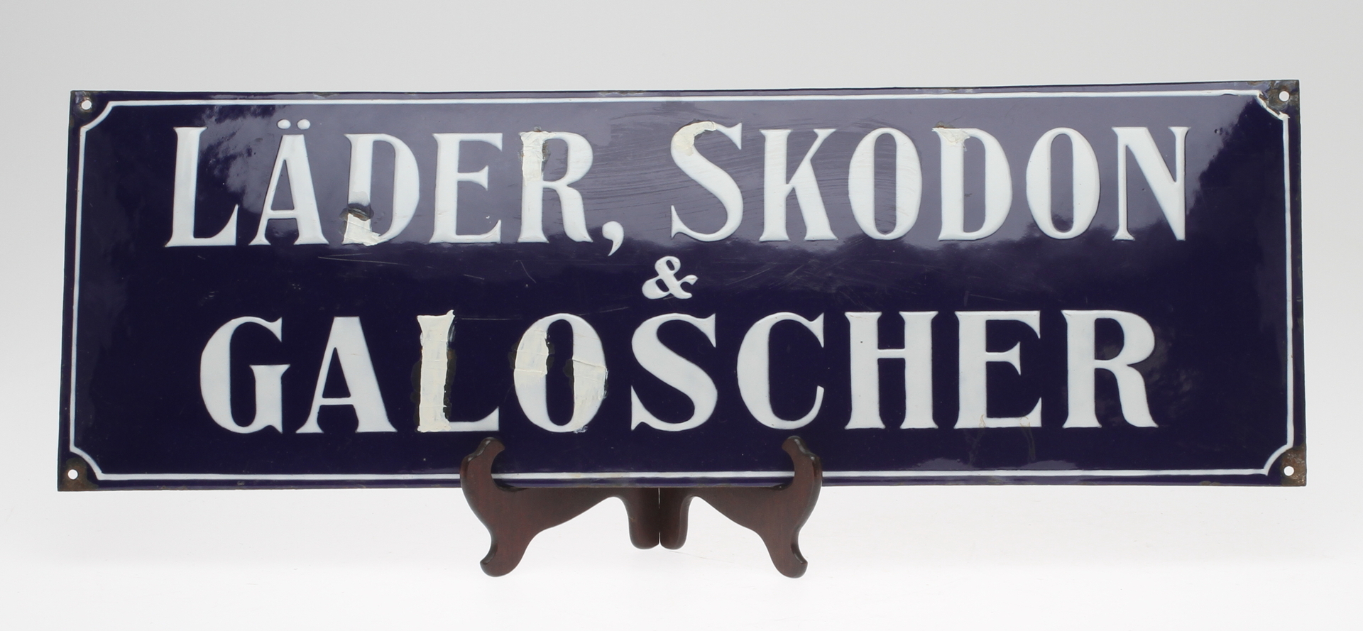 28709. EMAILLESCHILD "Leder, Schuhe & Galoschen".