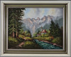Blick auf Pfarrkirche St. Sebastian in der Alpenlandschaft, Ritzsignatur, ca. 60 x 80 cm, gerahmt, Gesamtmaße ca. 78 x 98cm.