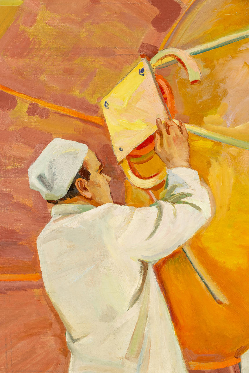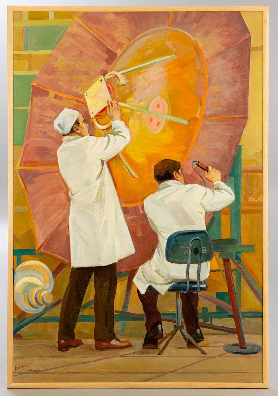 Evgenij Nikolaevich Tkachenko (1923-2002), Astrophysiker, 1970er Jahre, Öl auf Leinwand, links unten signiert, mit schmaler Atelierleiste ca. 173 x 118,5 cm.