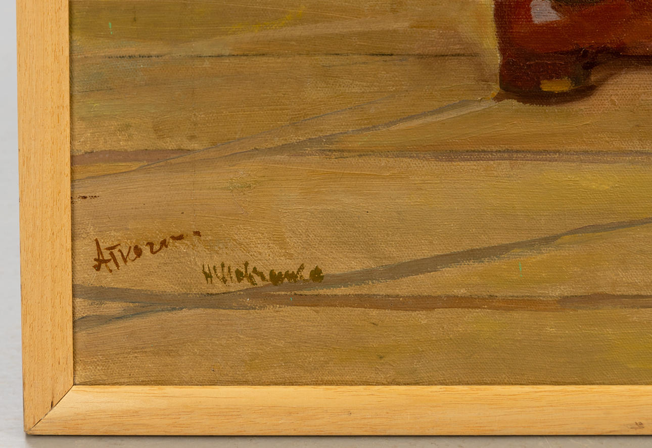 Rückseitige HInterlegungen, dort vorderseitig retuschiert, teils Craquelé, Rahmen mit Gebrauchsspuren.