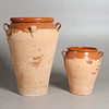 2873859. TÖPFE 2 Stück, Terrakotta, teilweise glasiert.