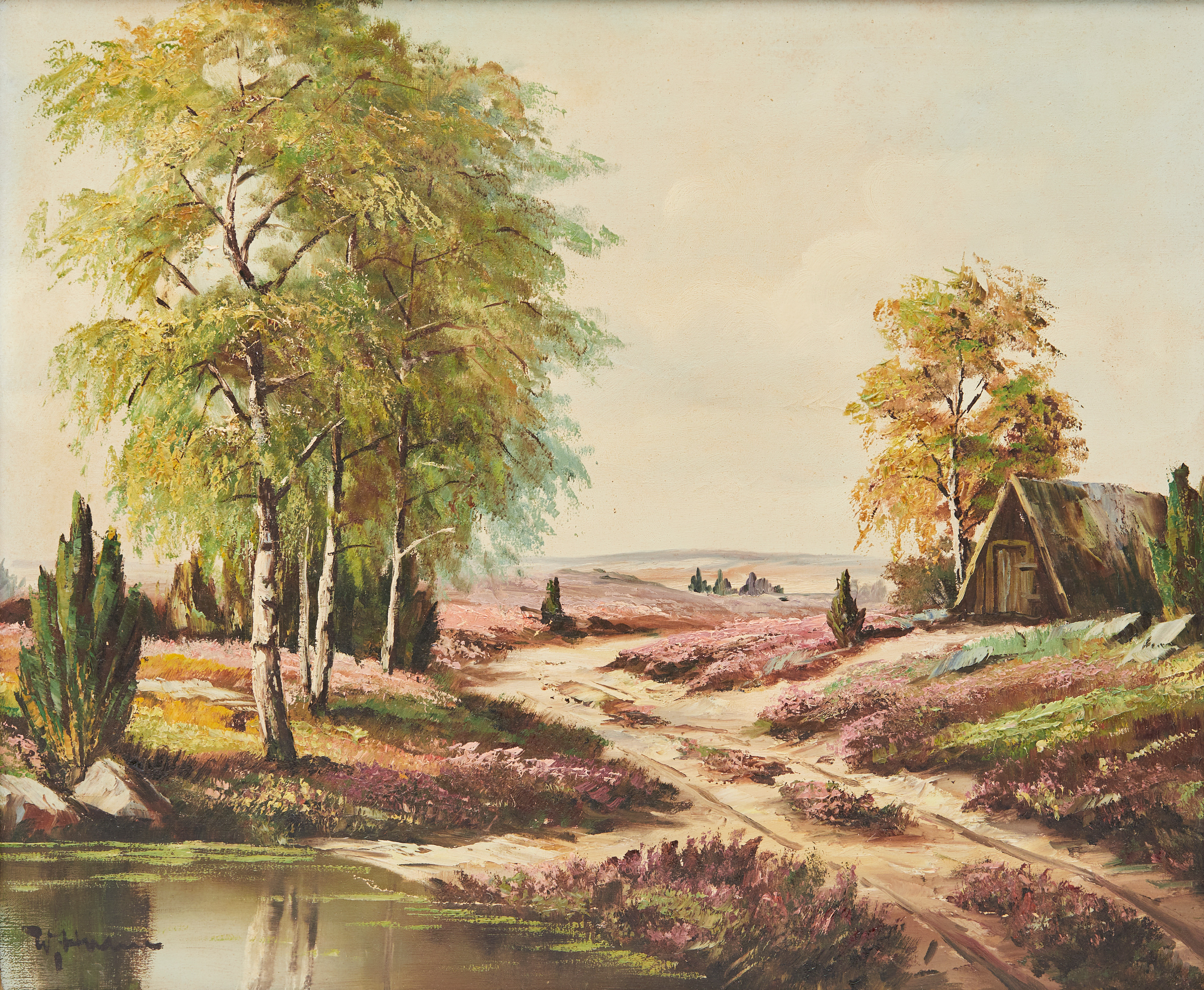 2878351. Willi Hahn, Gemälde, blühende Heide.