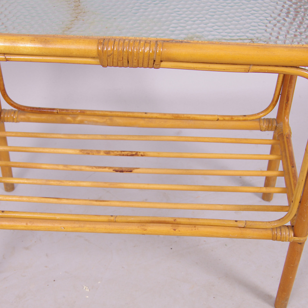 288073. TISCH UND ZEITUNGSKORB, Rattan/Glas.