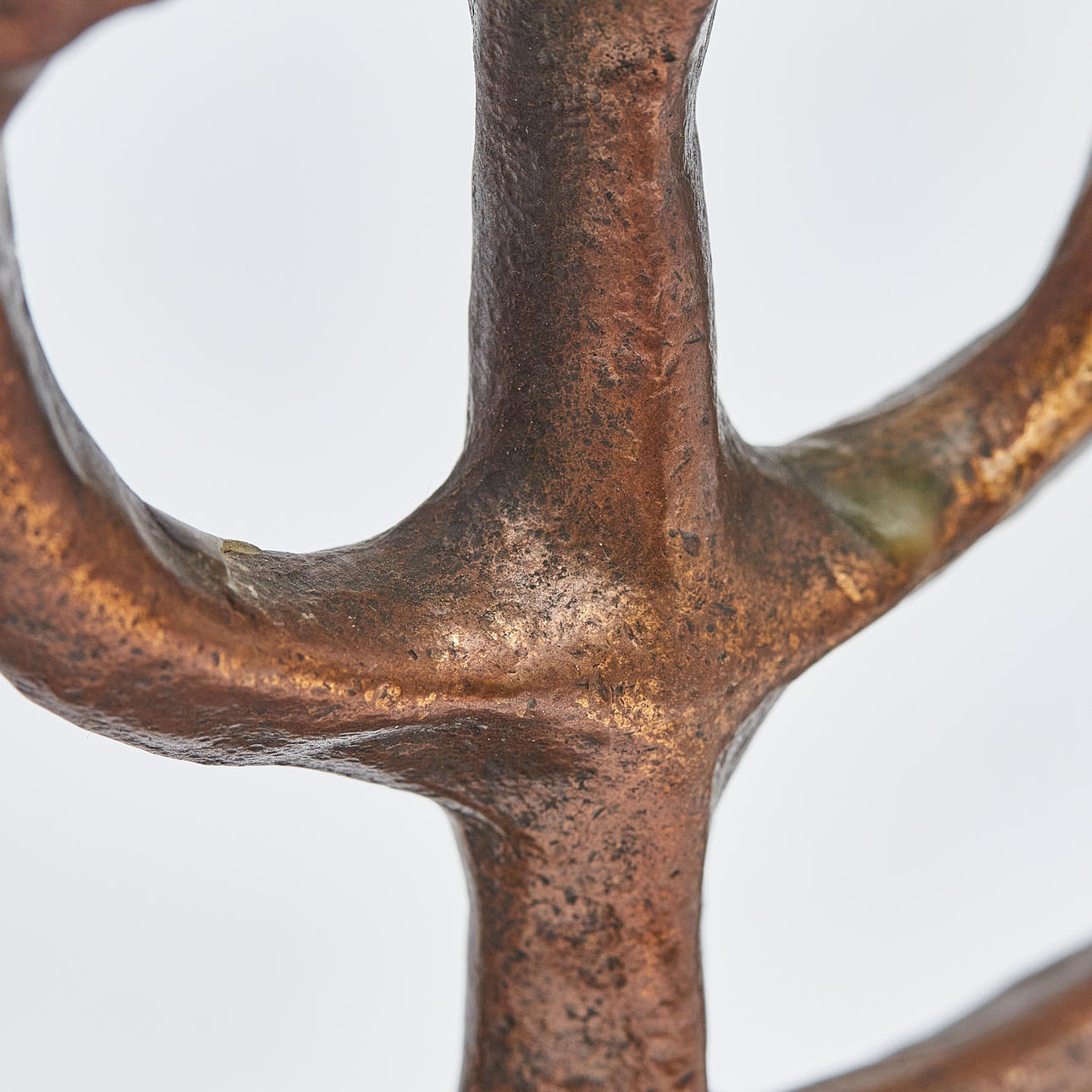 Menorah / Kandelaber, Bronze. Siebenarmiger Kerzenleuchter aus massiver Bronze, unterseitig mit Filzbeschichtung versehen, H.19,5cm, L.30cm, B.8cm.