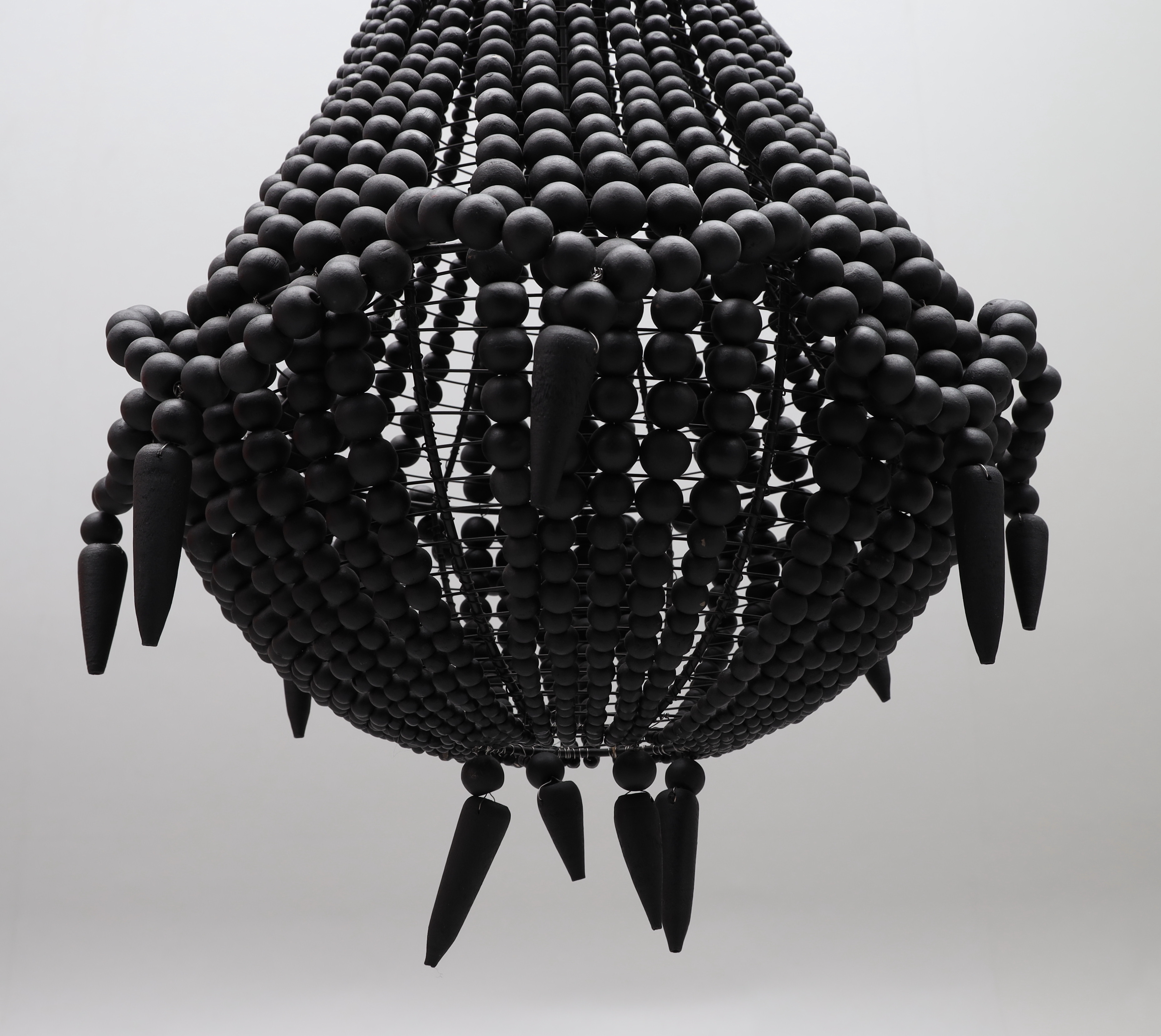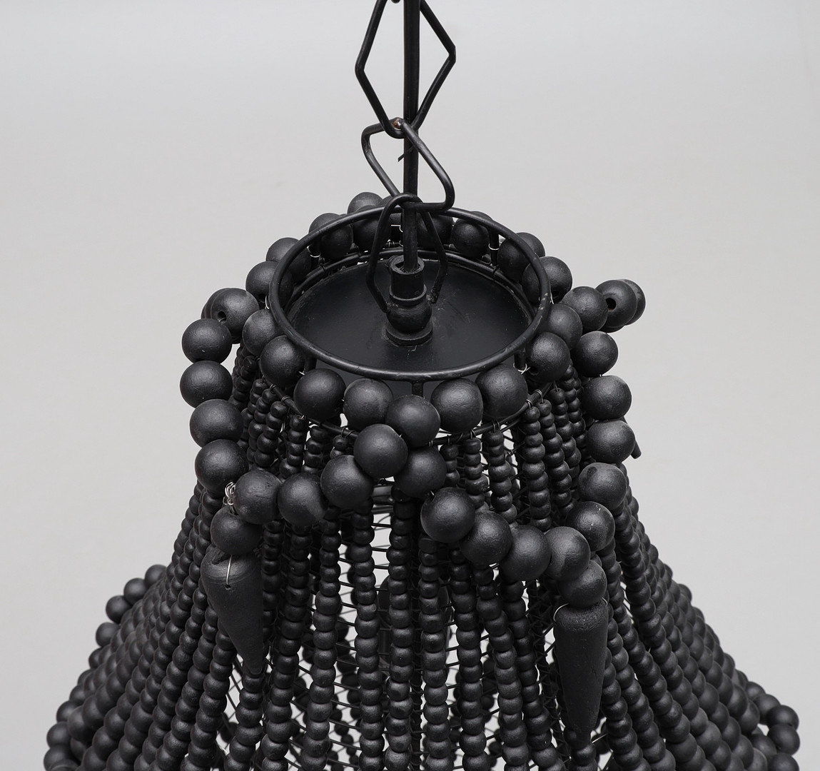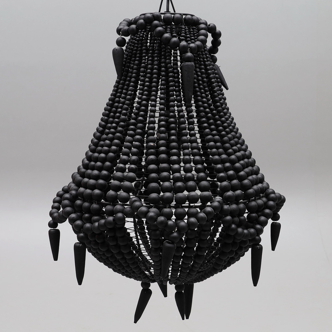 2890153. Kronleuchter, schwarze Holzperlen, Metallständer.