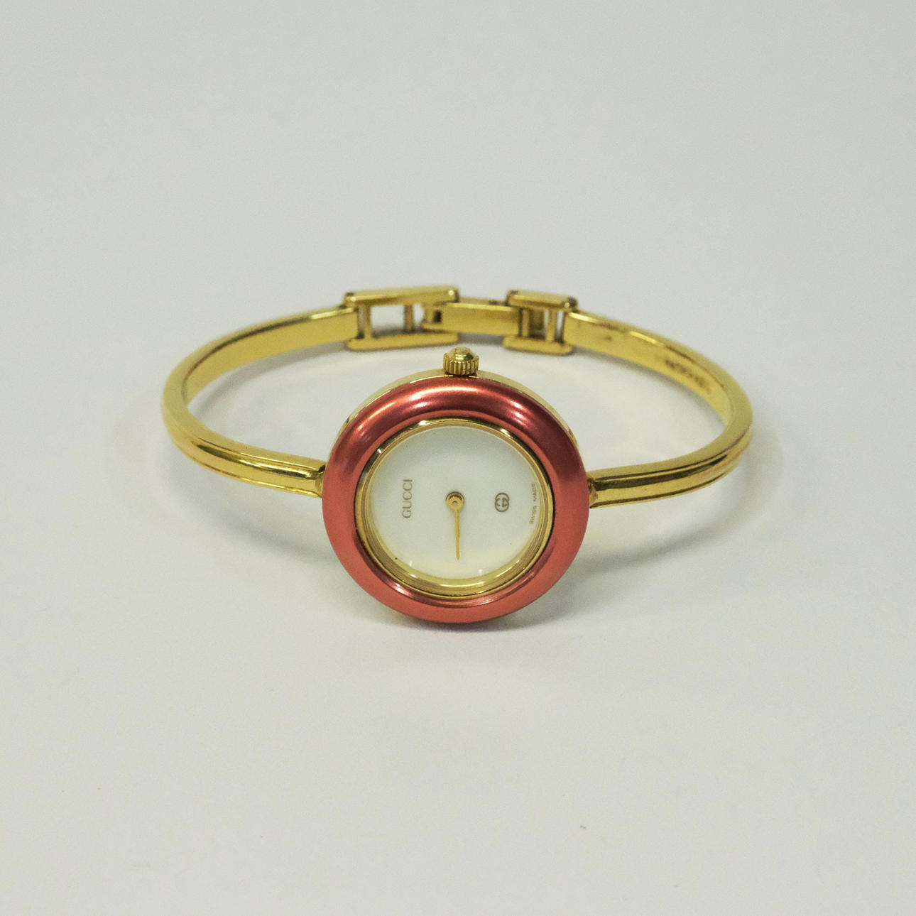 Quarzwerk. Mit zwölf austauschbaren Zierringen. Zifferblattdurchmesser: ca. 2 cm.