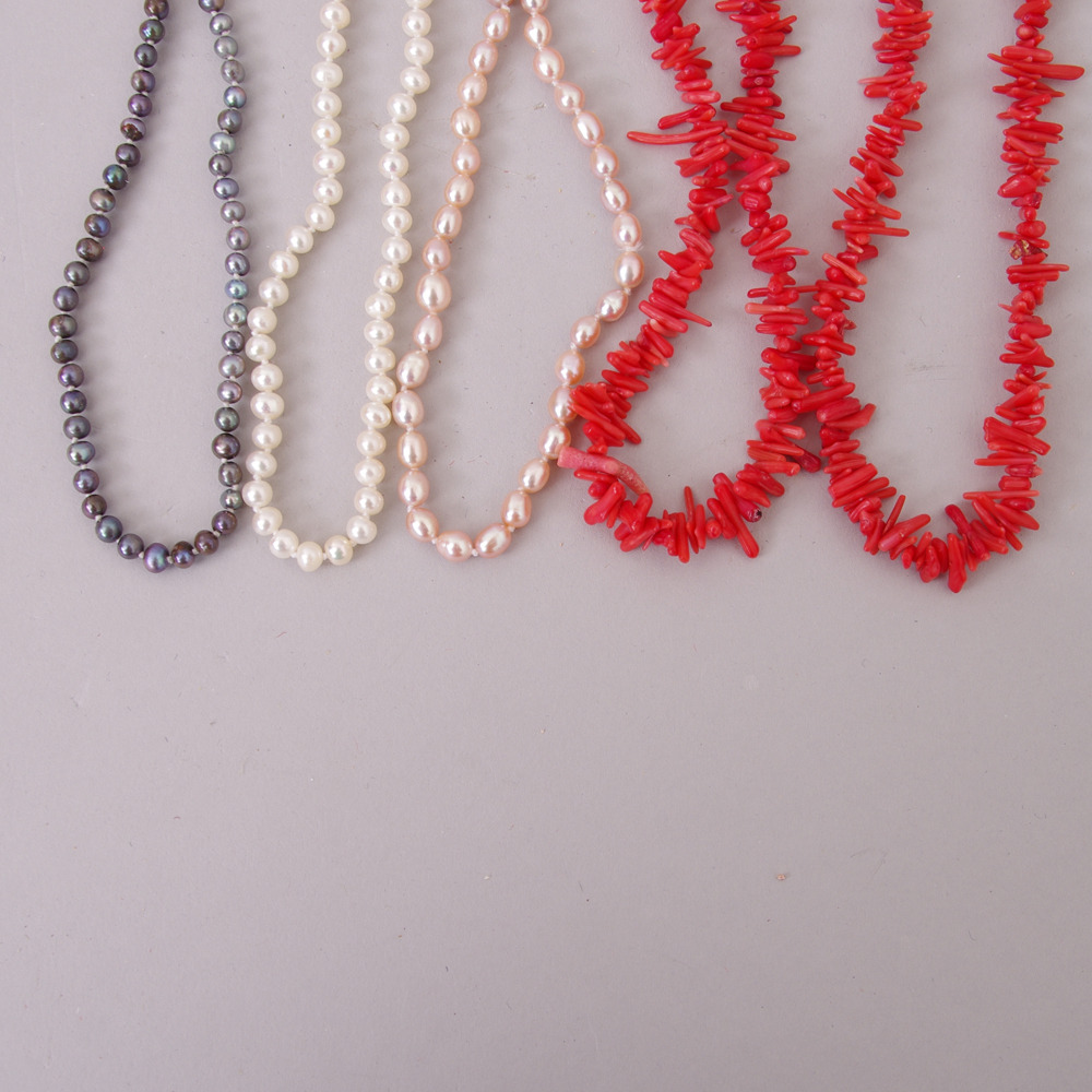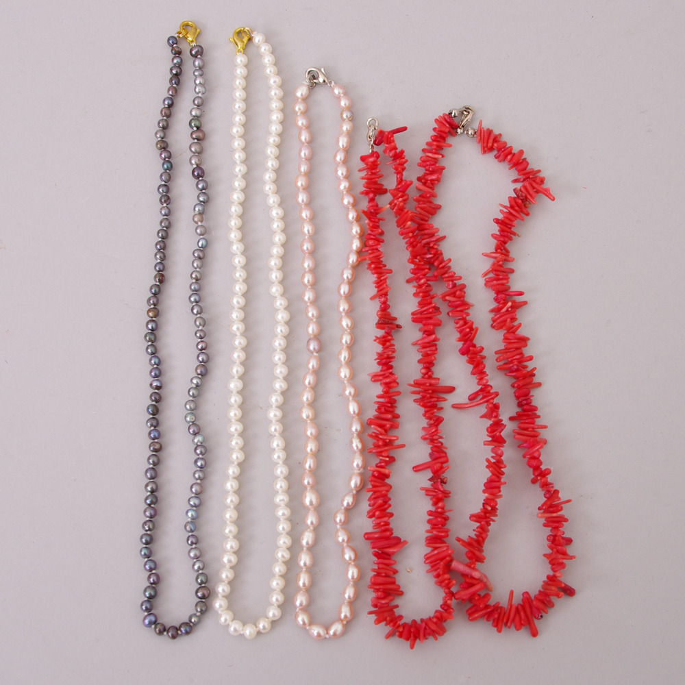 289915. HALSKETTE, 5 Stück, u.a. Süßwasserperlen.