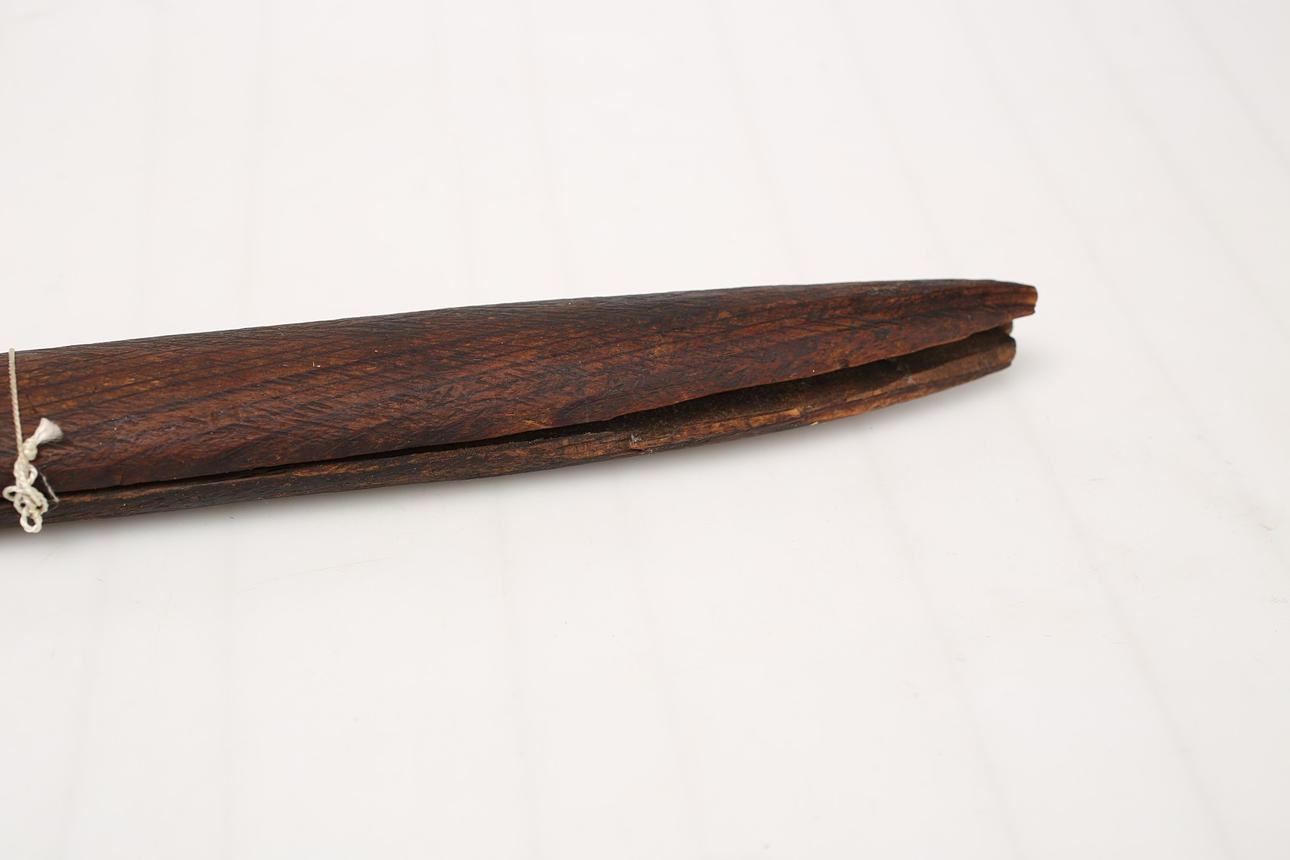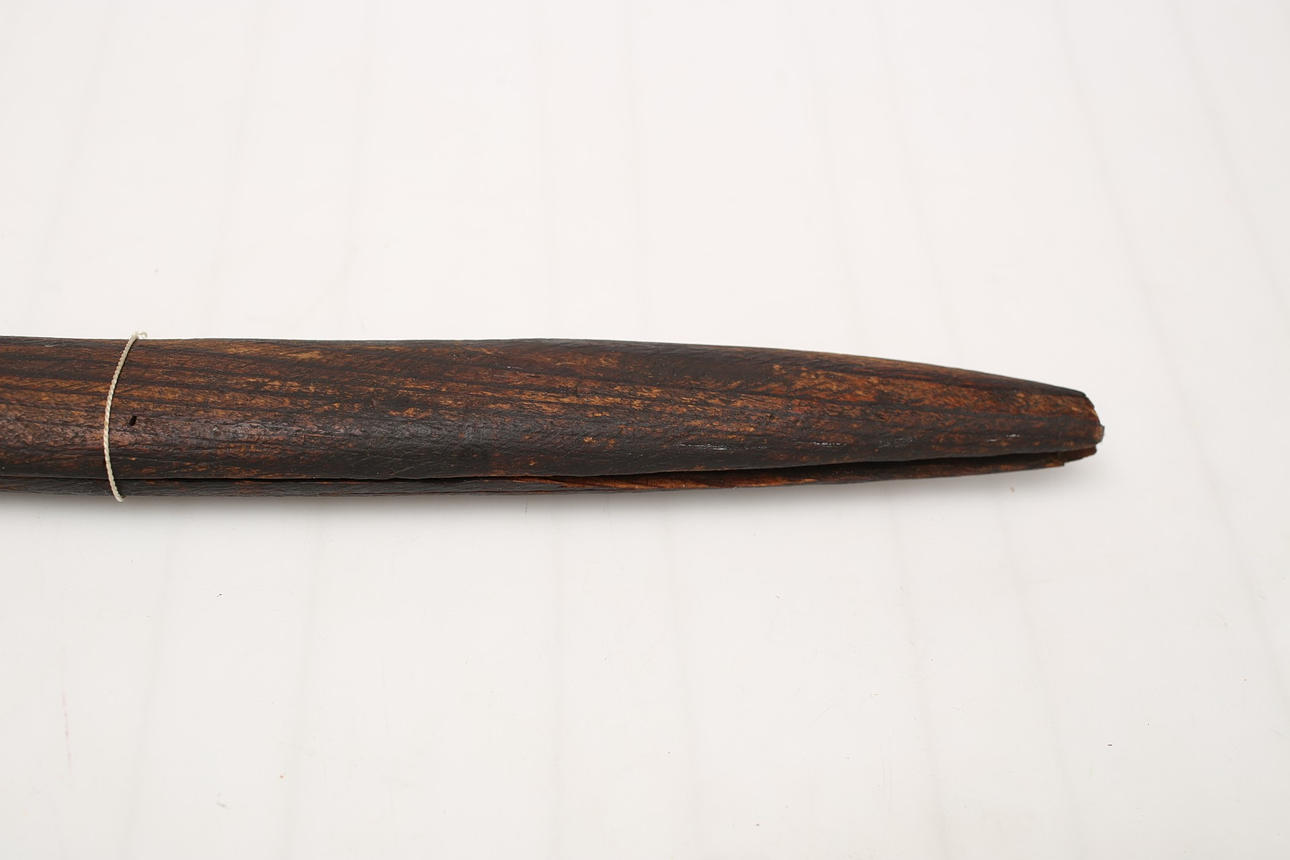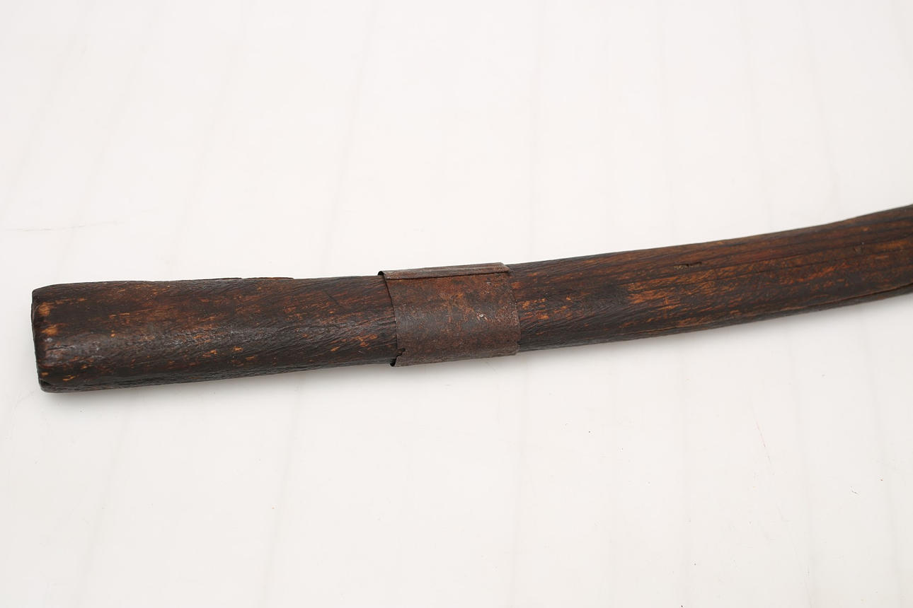 Schäden am Nudelholz, Holzbottich hat keine Beschläge und ist nicht mit Leder bezogen.