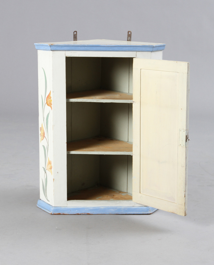 28998. ECKSCHRANK. 20. Jahrhundert, Blumenschmuck.