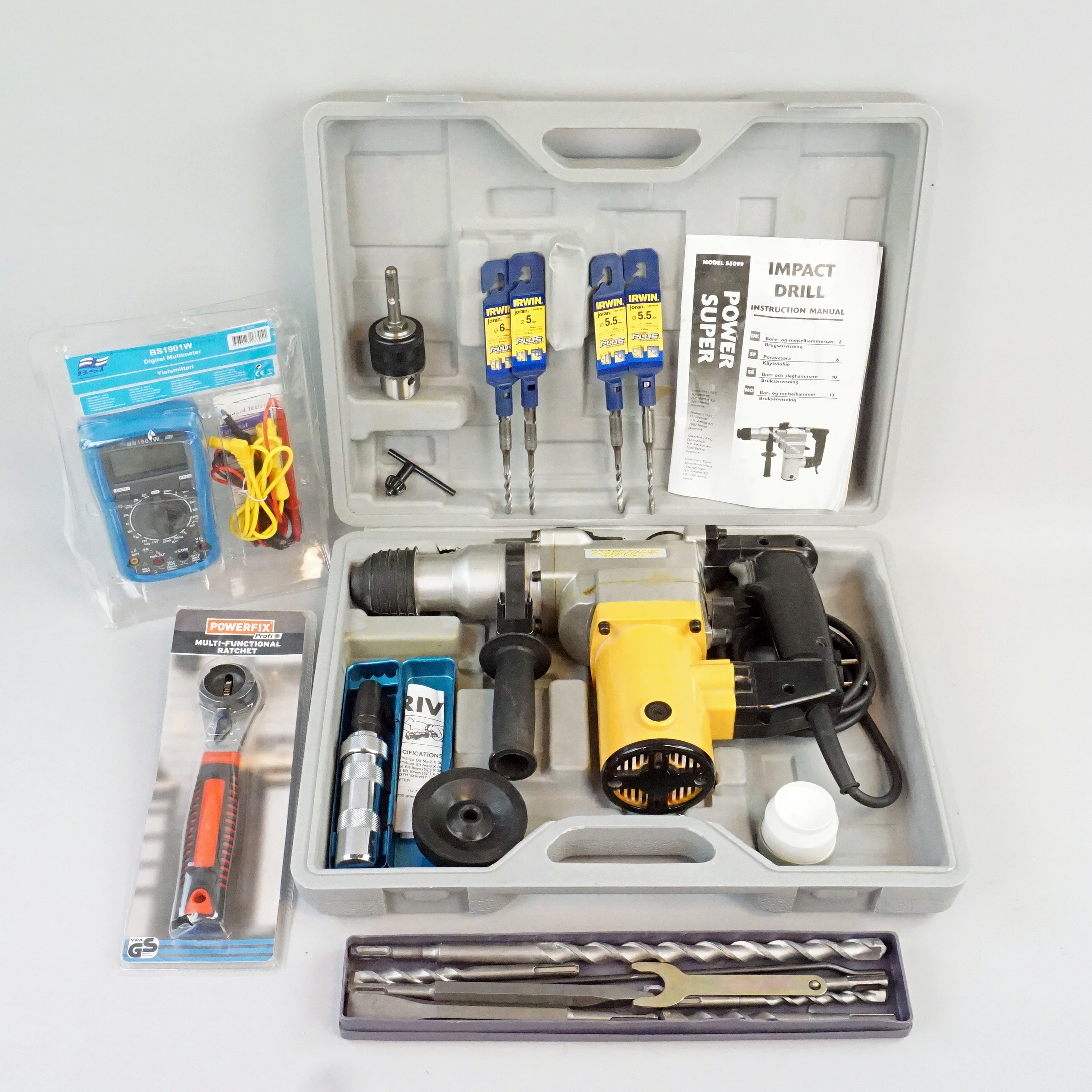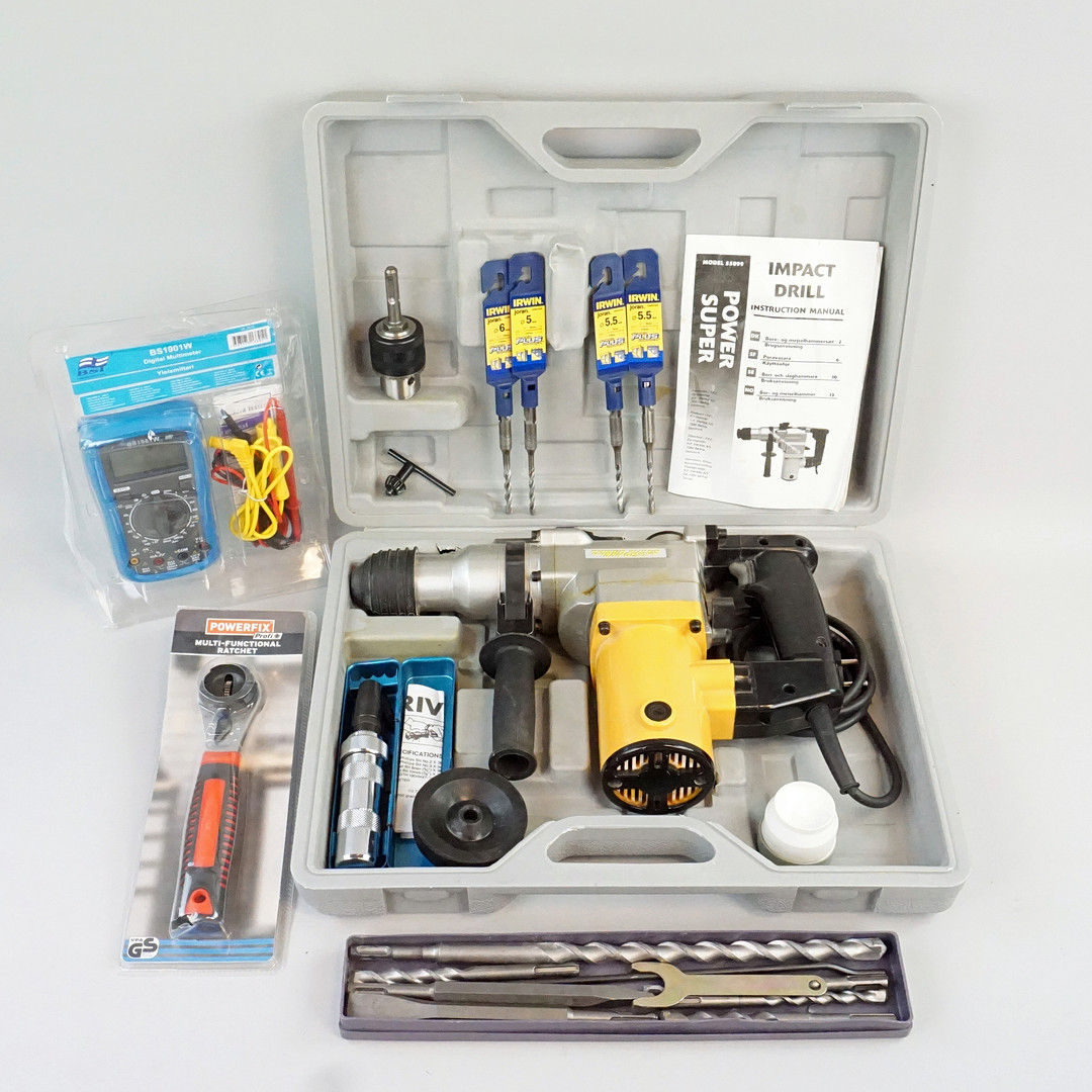 2900002. BOHR-/SCHLAGHAMMER, MULTIMETER und STECKSCHLÜSSEL.