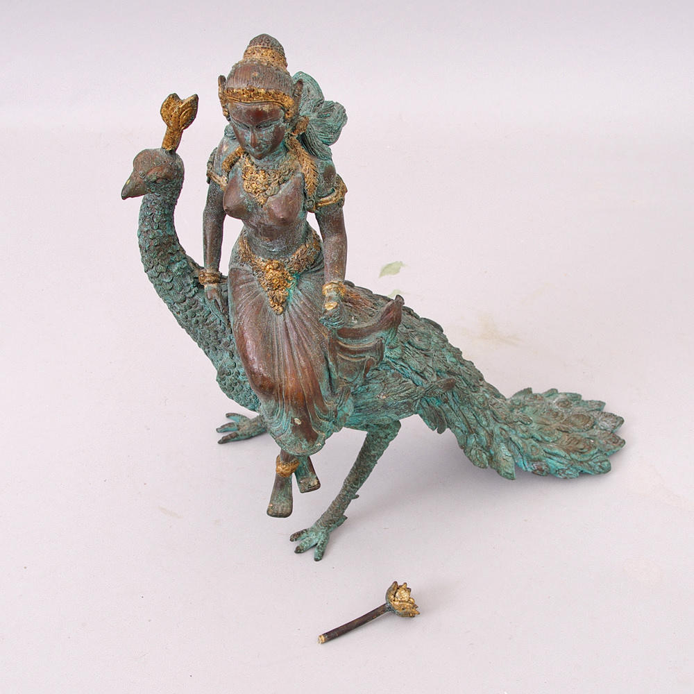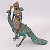 290141. SKULPTUR, Bronze, Frau auf Pfau.