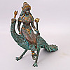 SKULPTUR, Bronze, Frau auf Pfau.