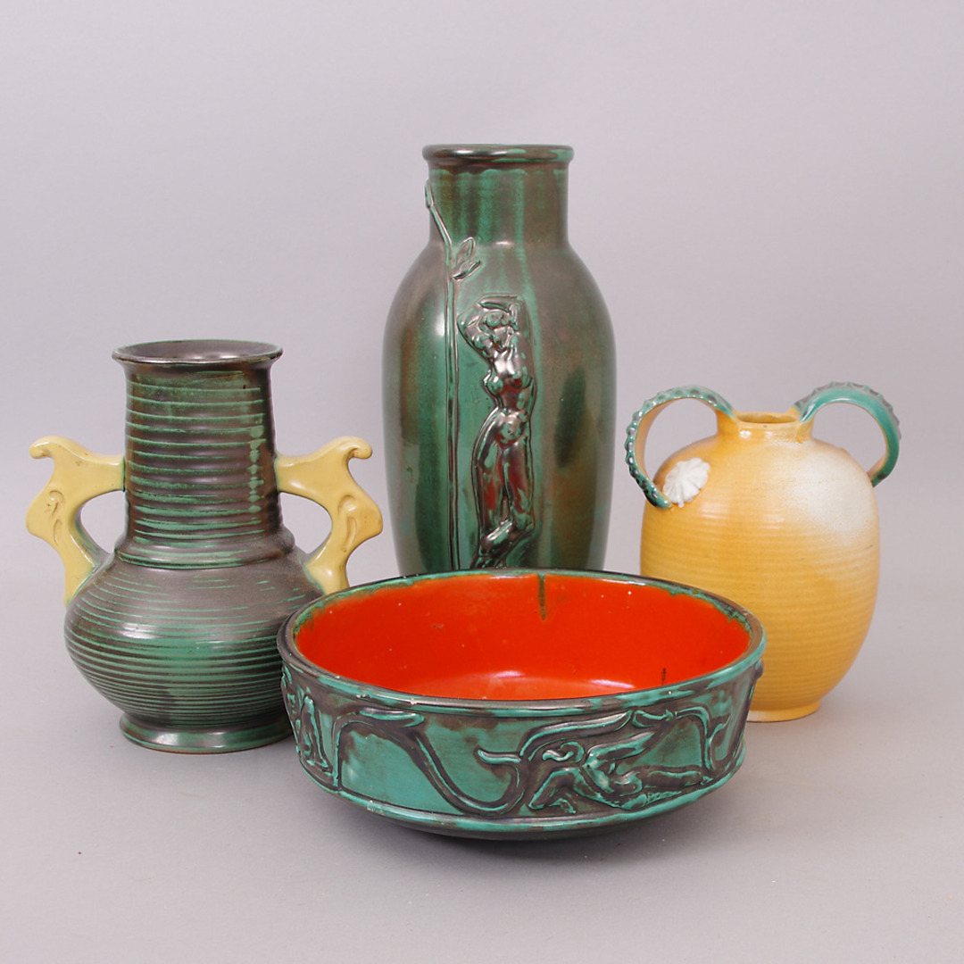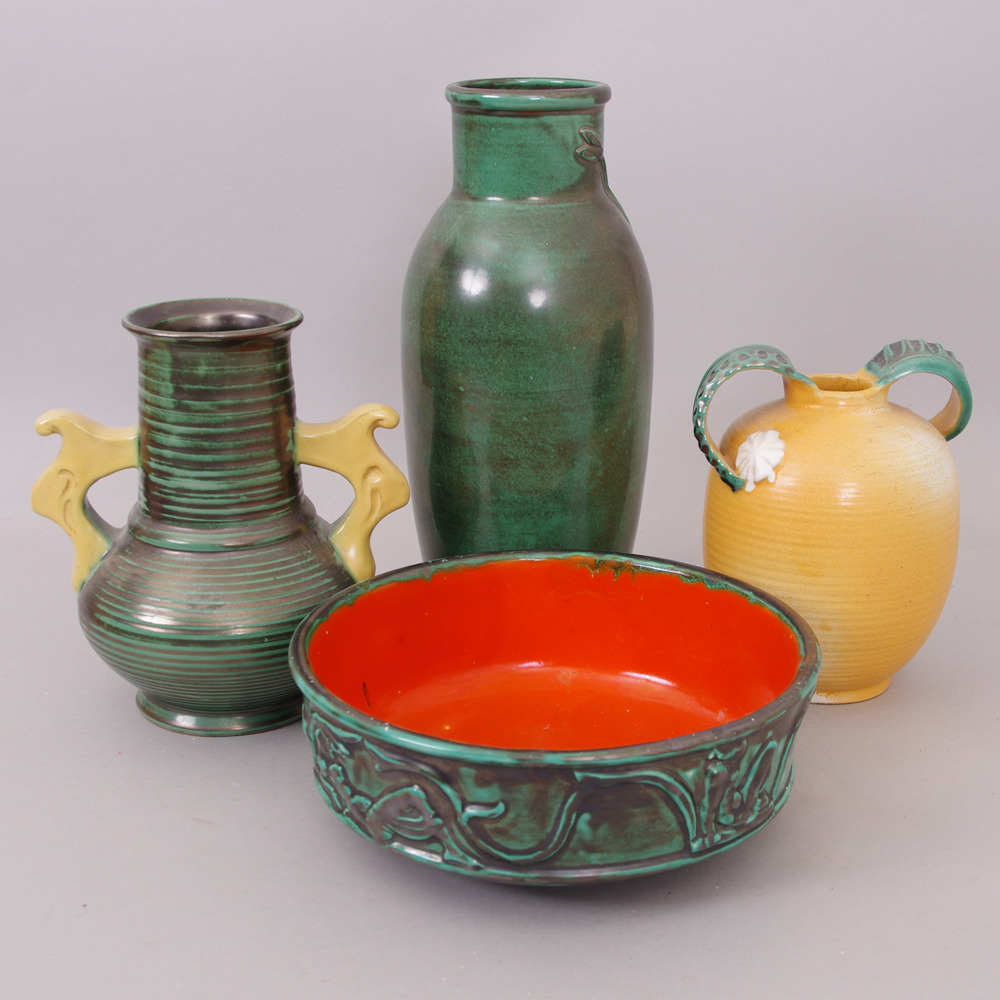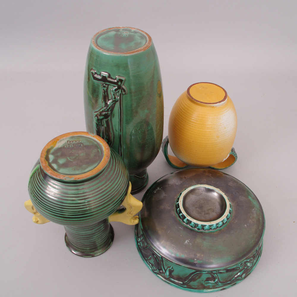 290174. VASEN UND SCHALE, 4 Stück, Keramik, Ekeby.