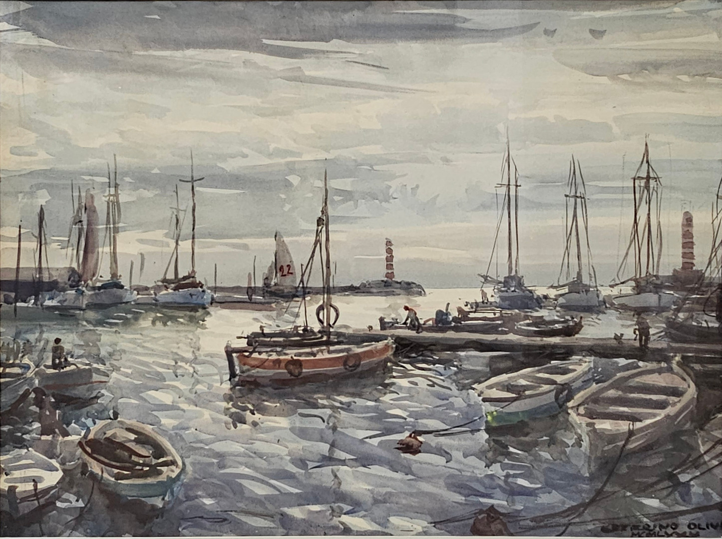 2903002. CEFERINO OLIVÉ. HAFEN. AQUARELL AUF PAPIER.