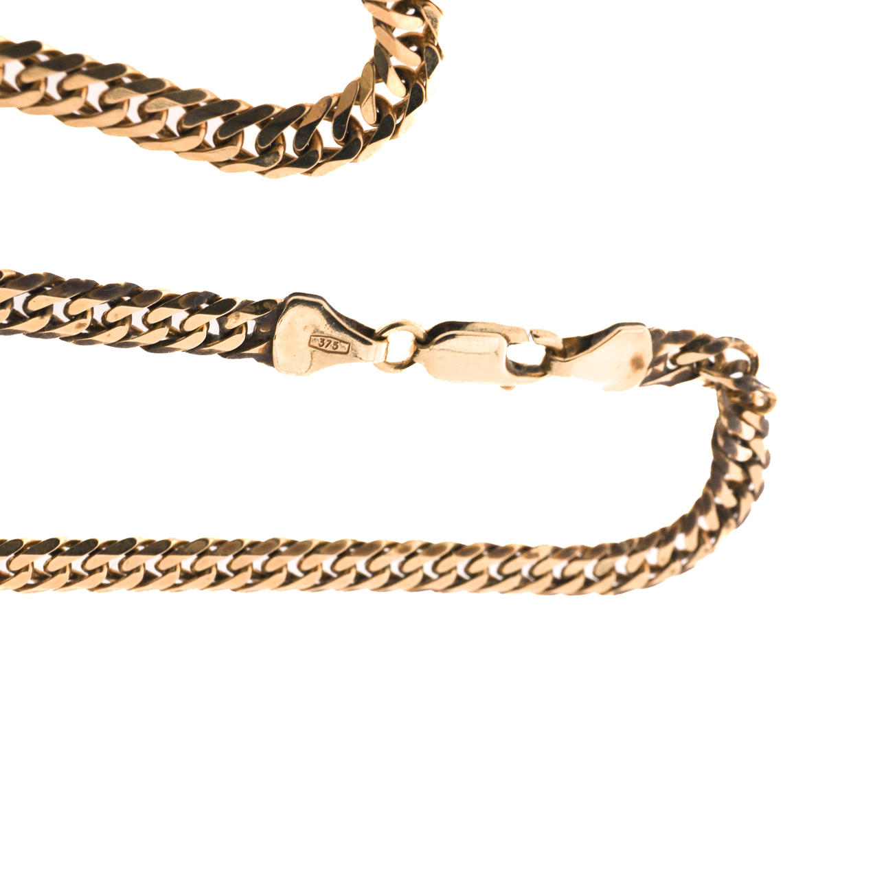 Eine moderne, abgeflachte Panzerglieder-Halskette mit dem Stempel 375.