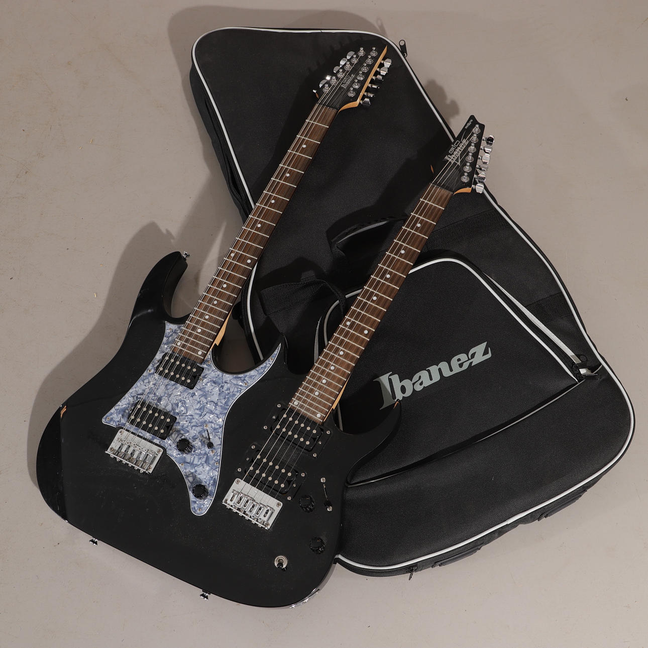 6 und 12 Saiten, Länge 88-98 cm. Beide Hälse gemarkt N 427, 12-saitig gemarkt J 110550646. Mit Koffer, Kabel und 2 Inbusschlüsseln.
