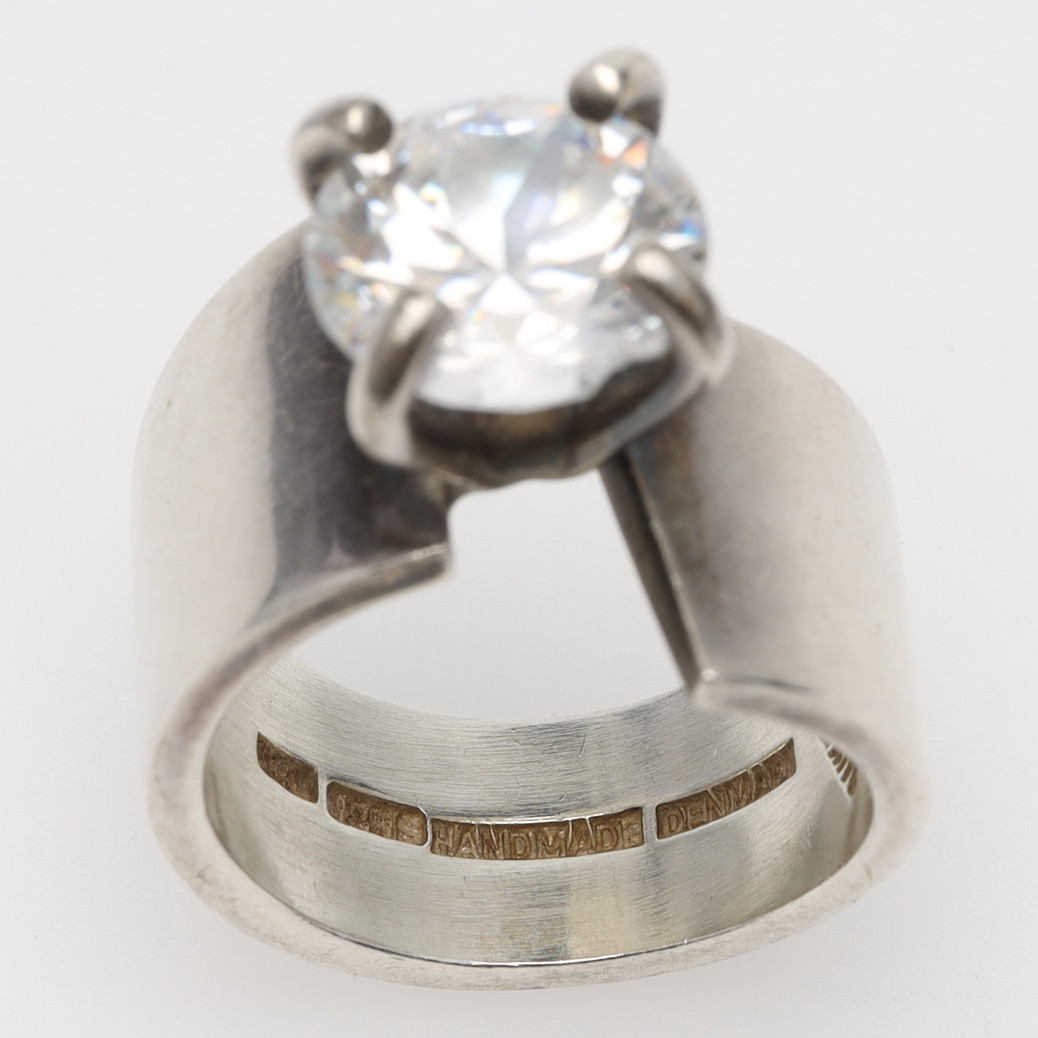 2911144. RING, Heirship Statement-Ring, Silber, Zirkonia-Stein.