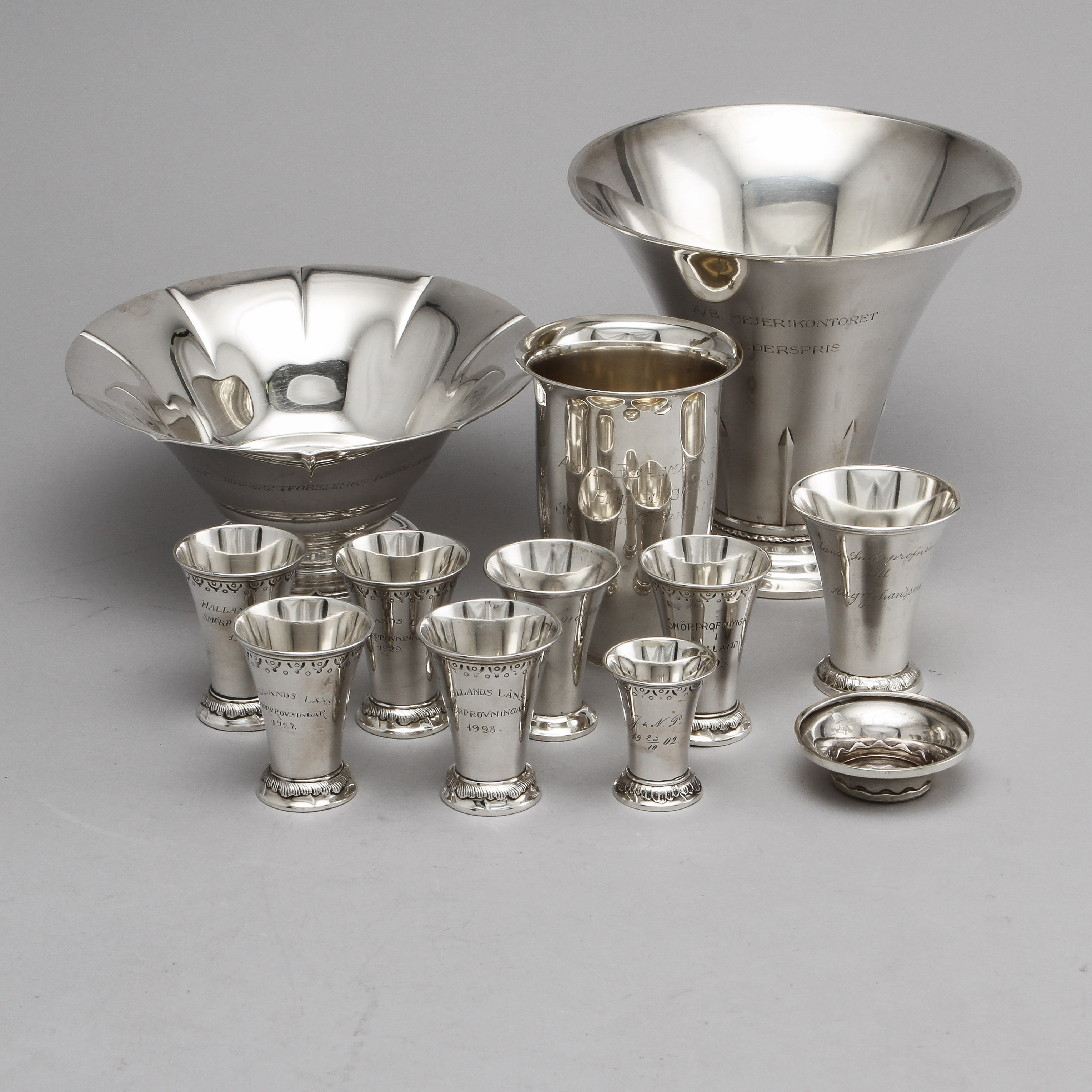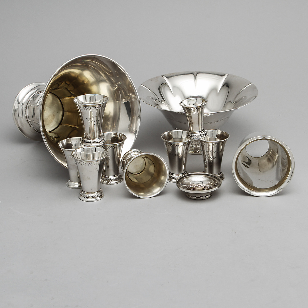 291189. SILBEROBJEKTE, 11 Teile 1900. Gewicht etwa 800 Gramm.