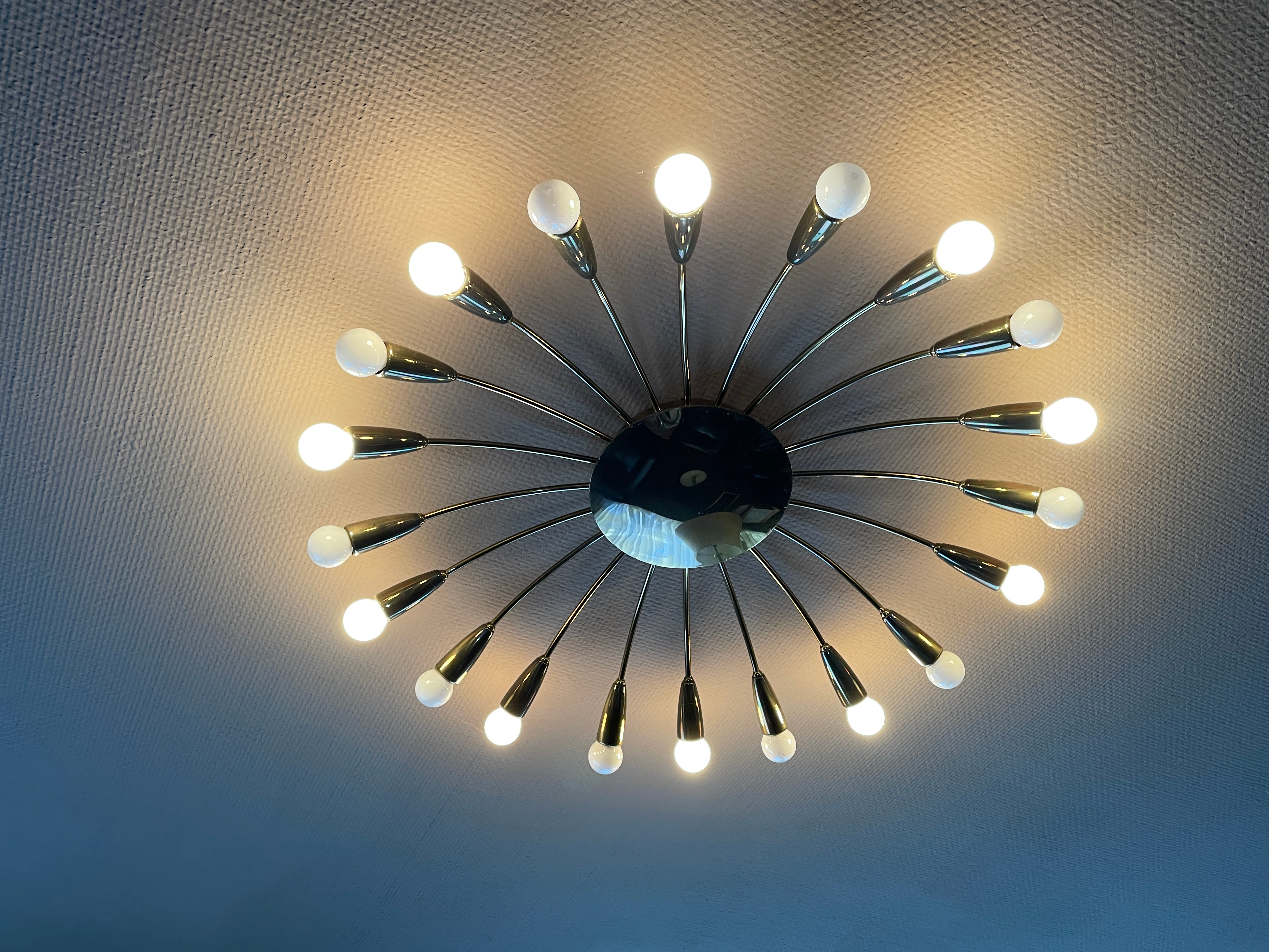 2912192. Messing Deckenleuchte 'Spider', Mitte 20. Jahrhundert.