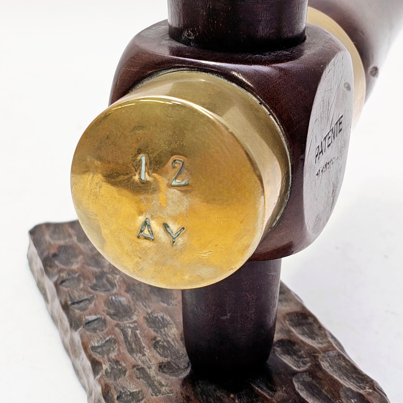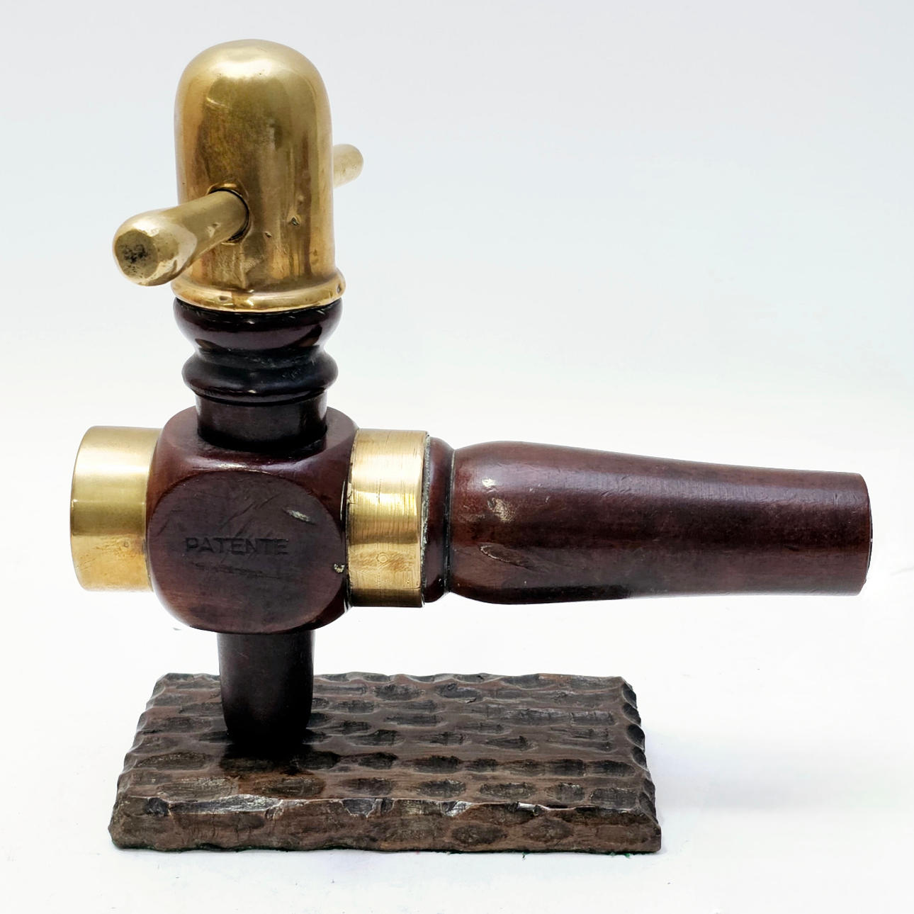 2914956. FASSHAHN AUS HOLZ UND GOLDMESSING.