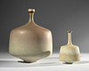 2 Vasen. Keramik, Steingut. H. 13,5 cm, D. 9 cm / H. 22 cm, D. 19 cm. Jeweils am Boden mit Werkstattmarke bezeichnet.