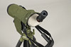 Das Teleskop mit 60-facher Vergrößerung, Modell TSN-821, mit Abdeckung, das Stativ in Khakigrün, ausziehbar auf 113 cm Höhe, mit Tragegurt.