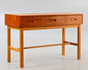 Kleiner Teak Konsolentisch / Sideboard. Mid Century Design. Teakfurnier und Holz. Mit Schubladen und verstrebten Untergestell.