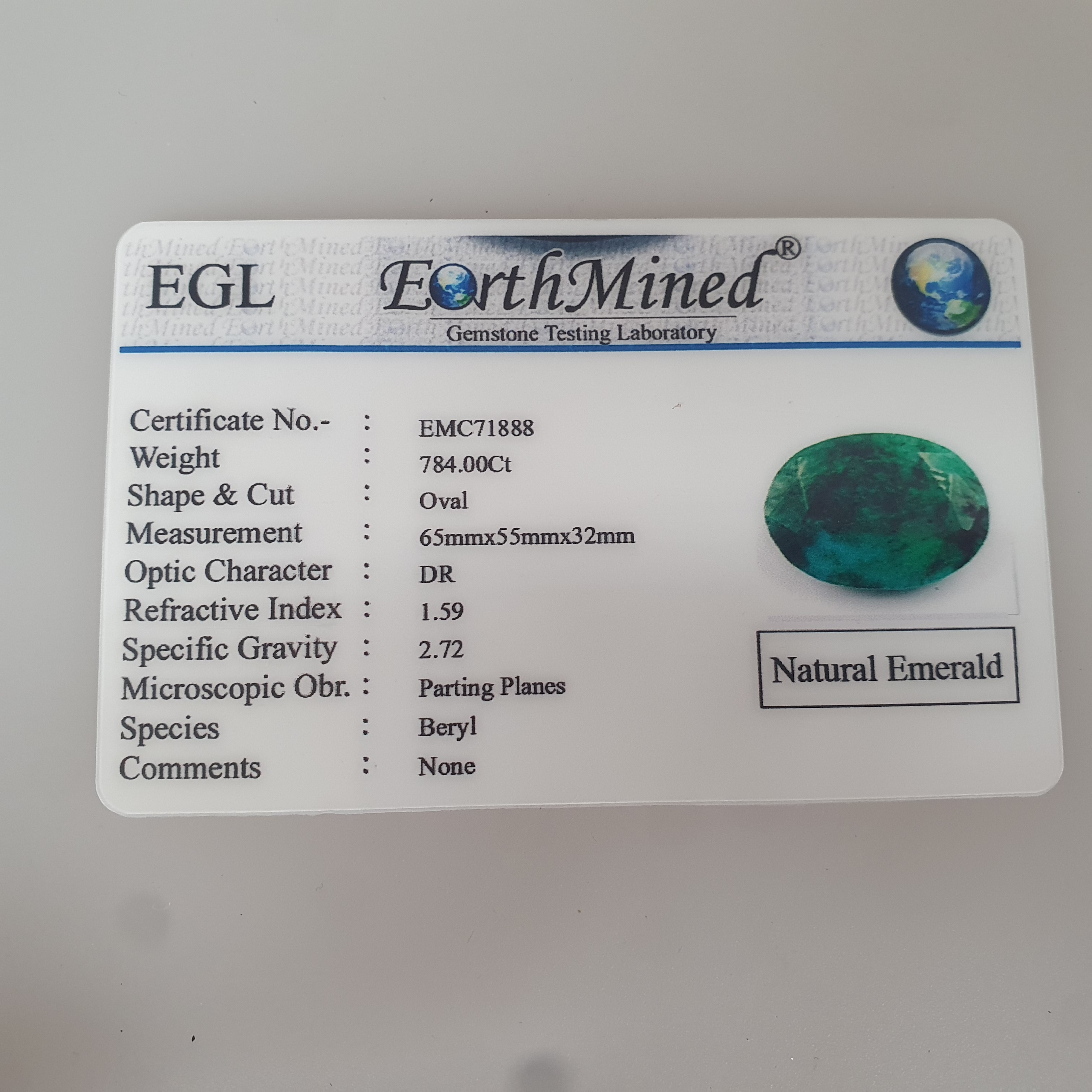2919759. - natürlicher Smaragd, oval, 784 ct.