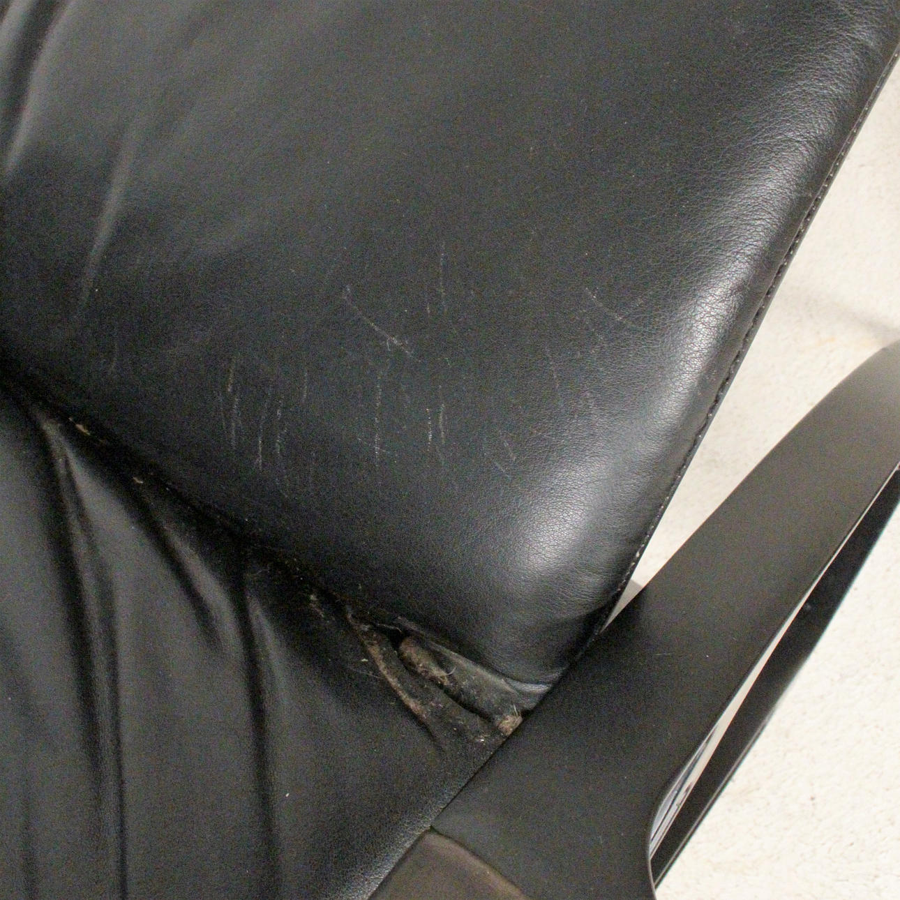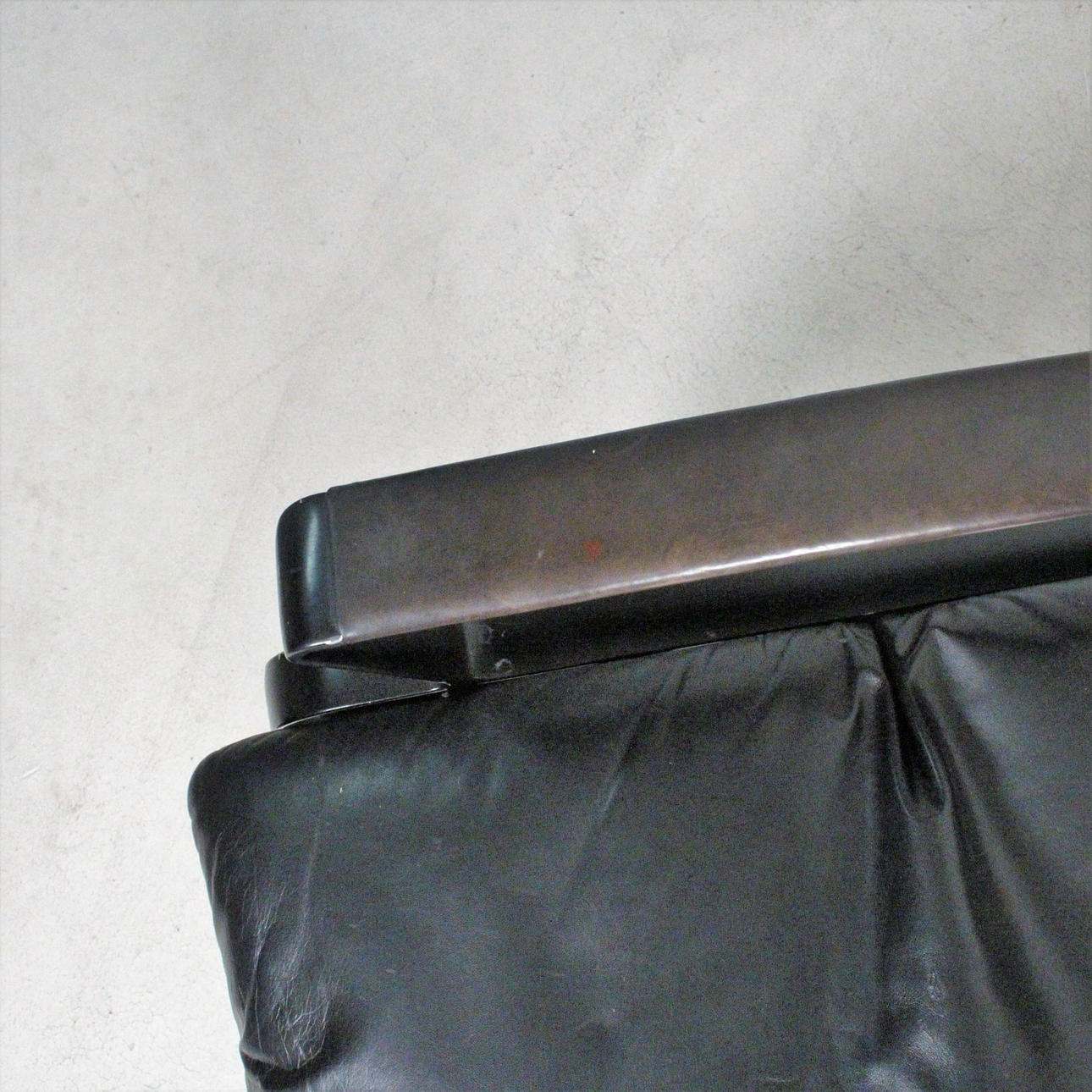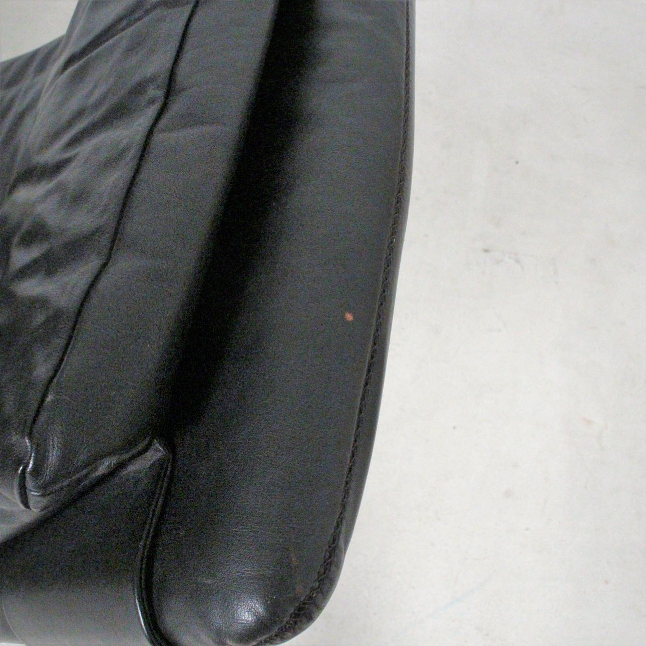 Relax Sessel Modell IP 84 S. Design 1980er Jahre. Stufenlos verstellbare Konstruktion aus schwarz lackiertem Aluguss, Bezüge in schwarzem Leder. H. 112, B. 73, T. 120 cm. Unterseitig bezeichnet.
