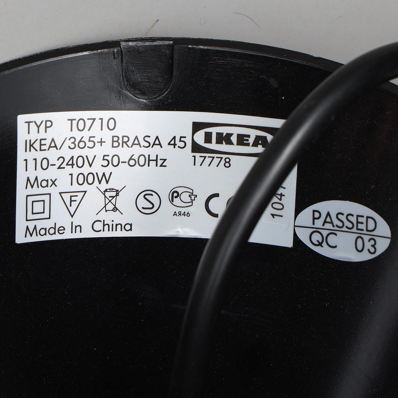 Durchmesser 45 cm. Langes Kabel, nur zur Vereinfachung des Fotografierens zusammengebunden.