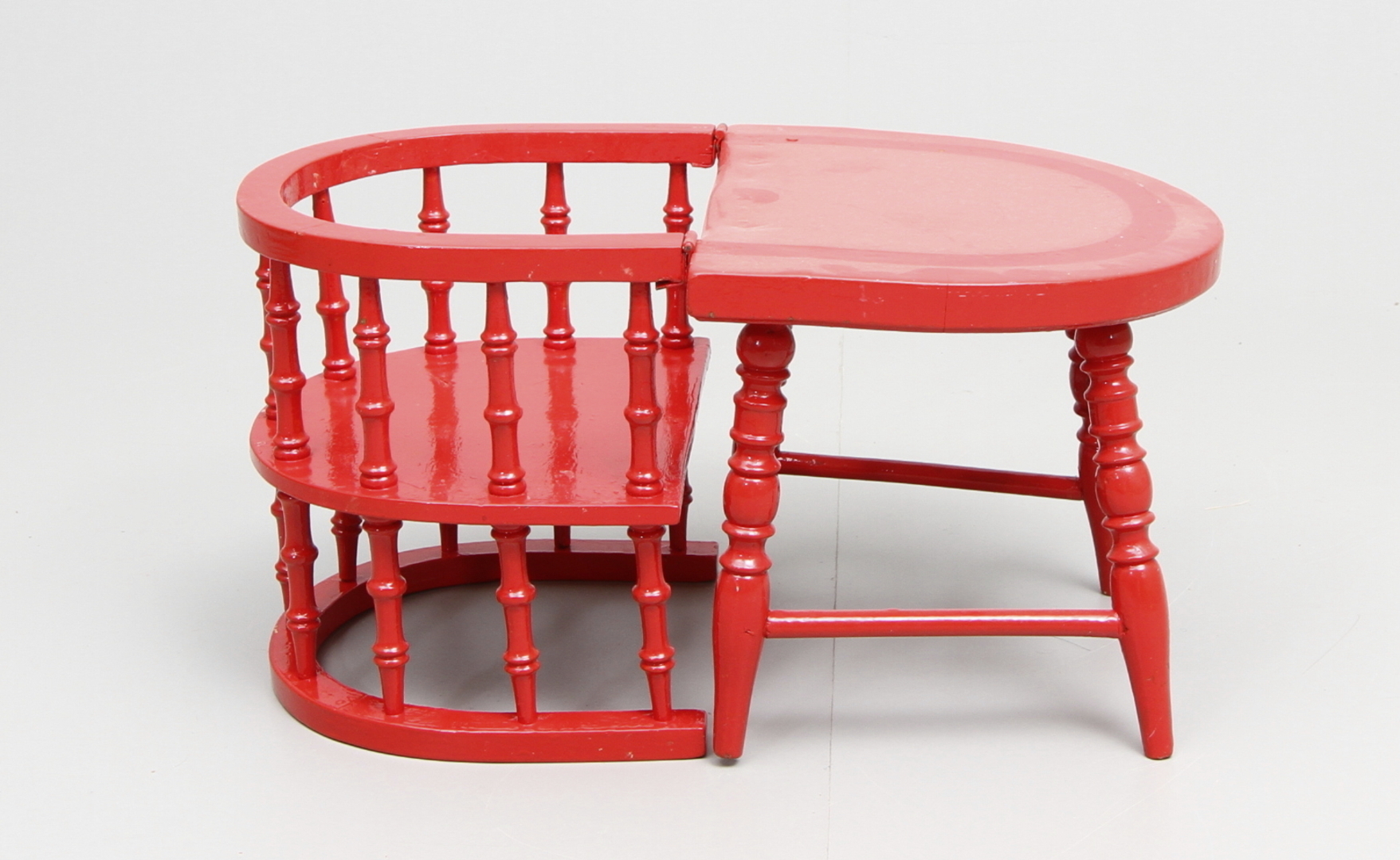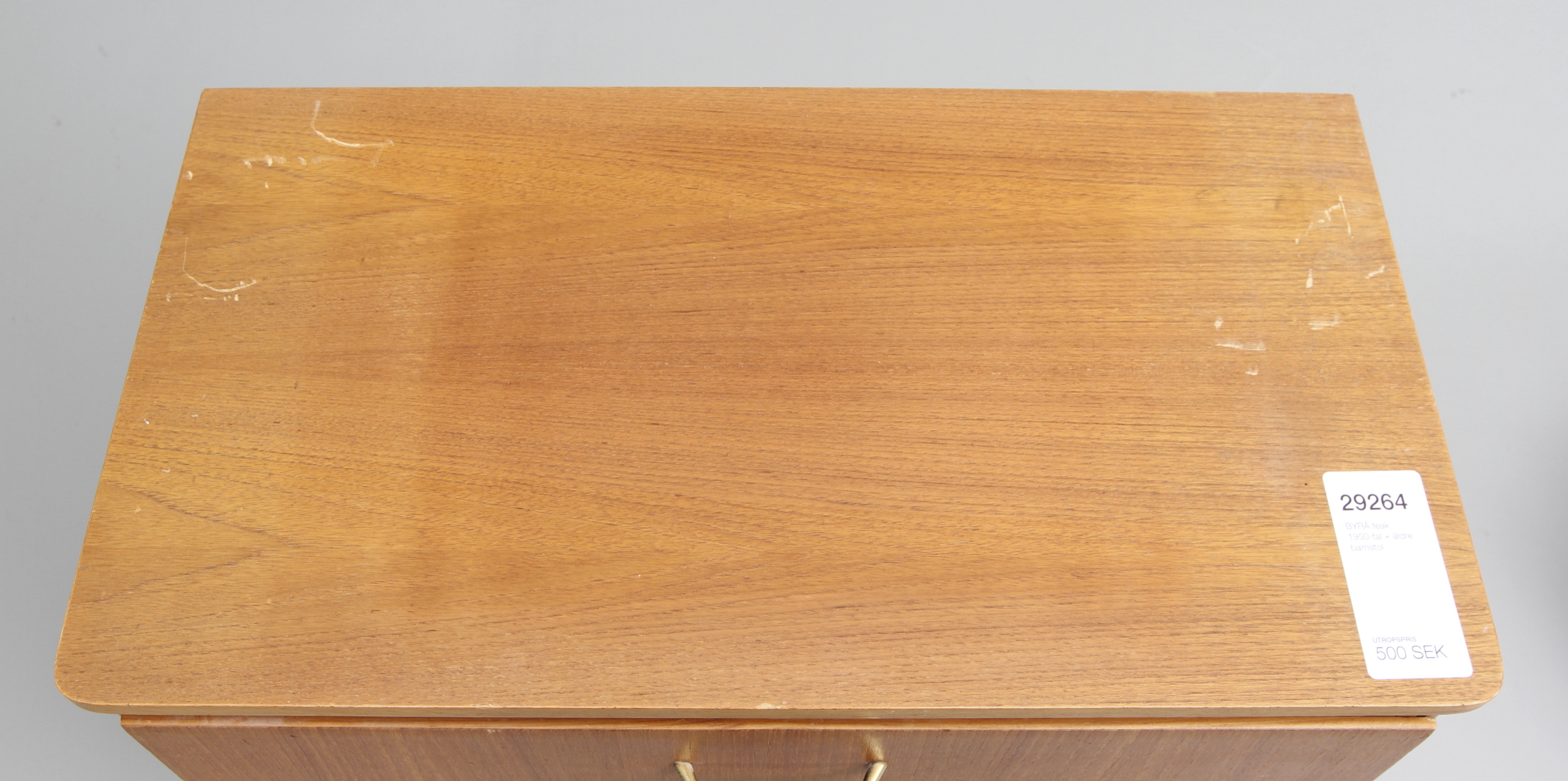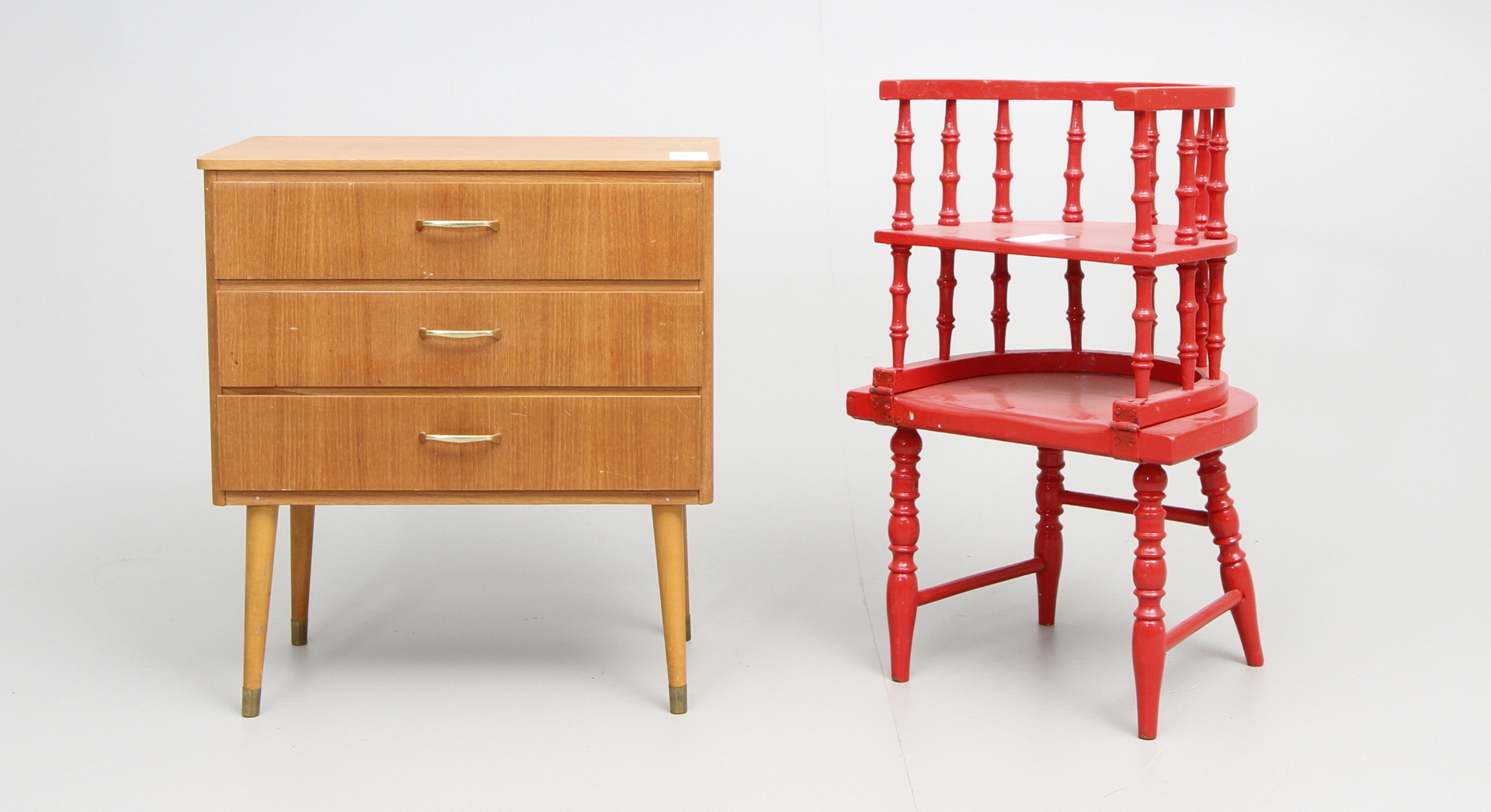 29264. Kommode Teak 1950er + älterer Hochstuhl.