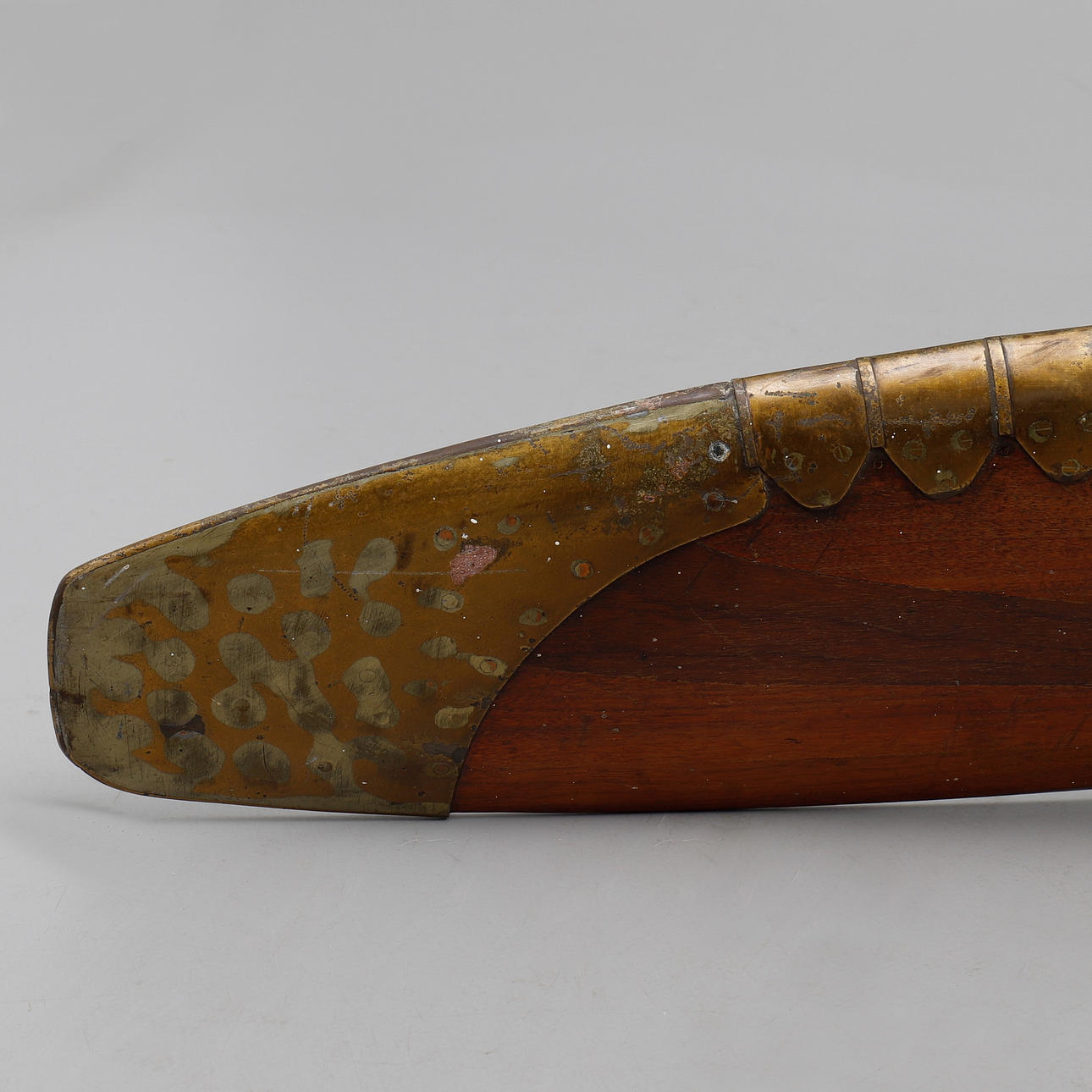 Aus laminiertem Mahagoni, originale Messingklingenverstärkungen mit Kupfernieten. Wahrscheinlich ursprünglich an einer Fokker J3 (C.VE) oder einer Fokker S6 (C.VE) montiert. In Lizenzproduktion in Schweden um 1930. Insgesamt wurden 38 Stück produziert.