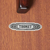 Thonet, Tisch / Esstisch, Buche. Konstruktion aus lasiertem Buchenholz mit einem zweiteiligen Viersternfuß sowie einer runden, erweiterbaren Tischplatte, mit zwei Einlegeplatten ausgestattet, unterseitig mit Herstelleretikett bezeichnet, H.73cm, L.110-230cm, B.110cm.
