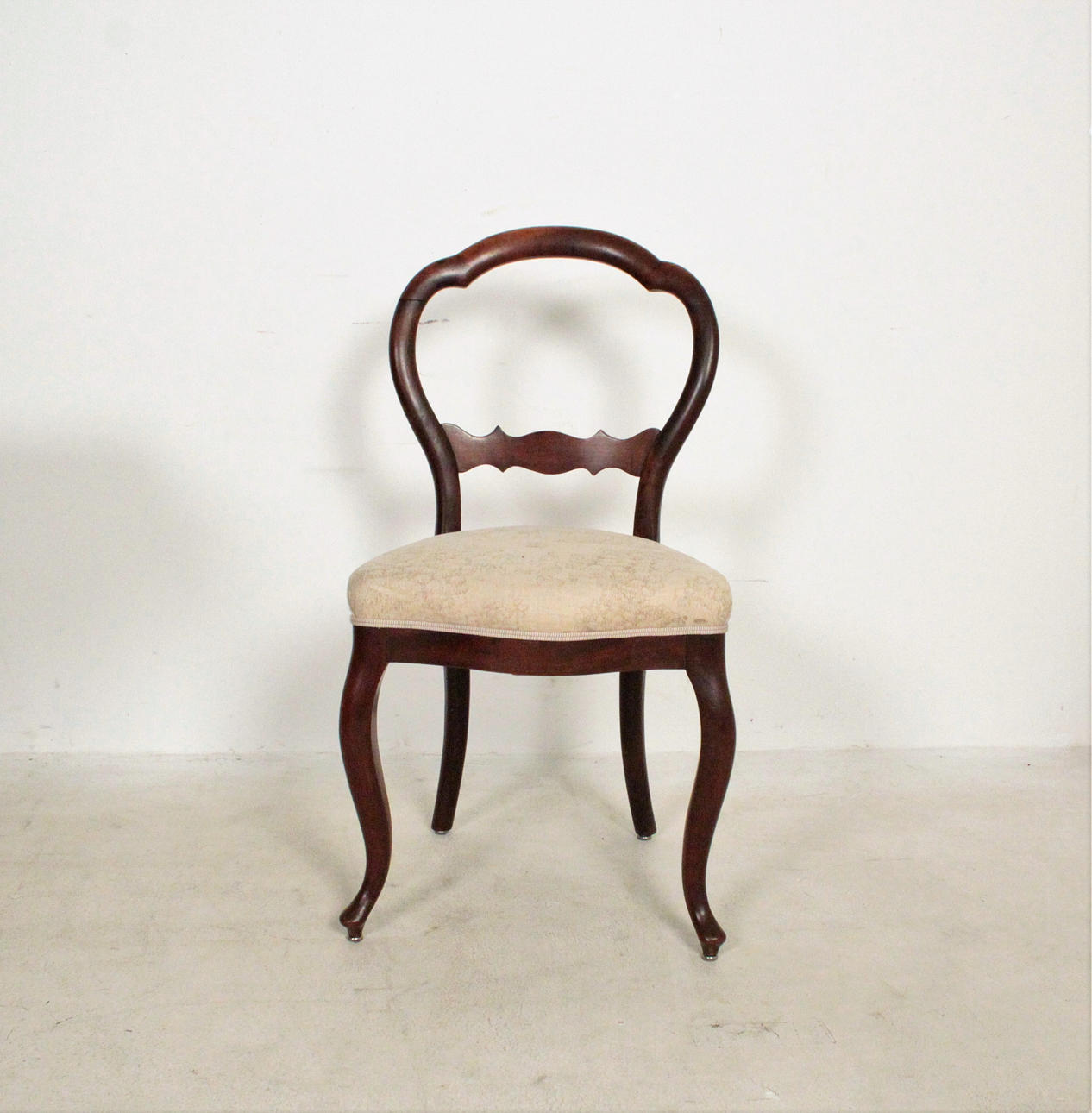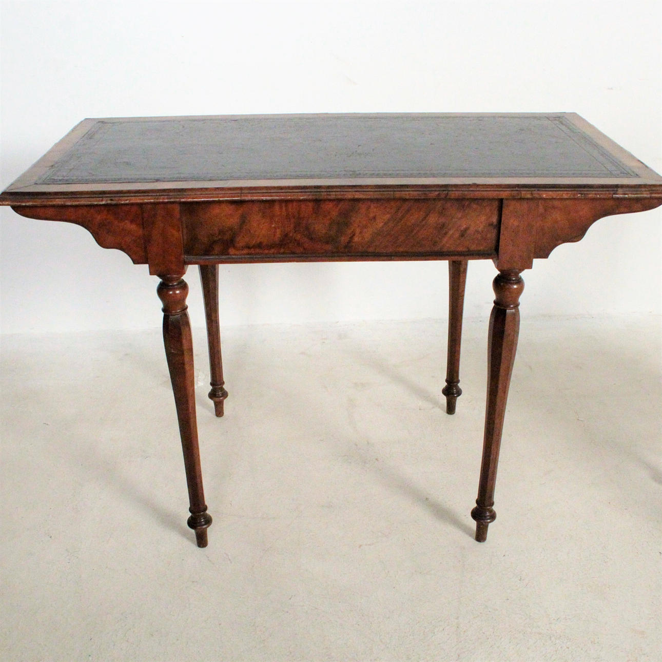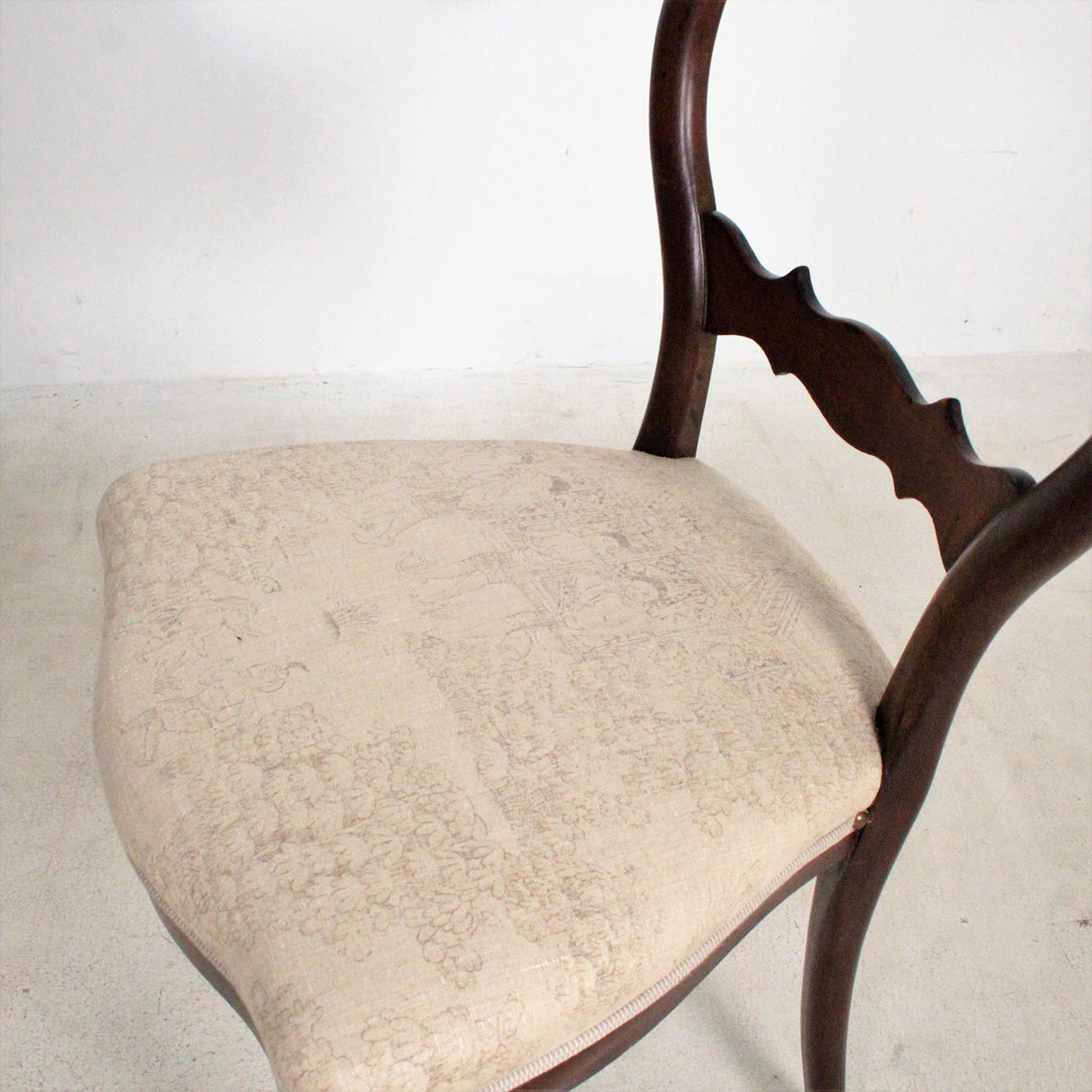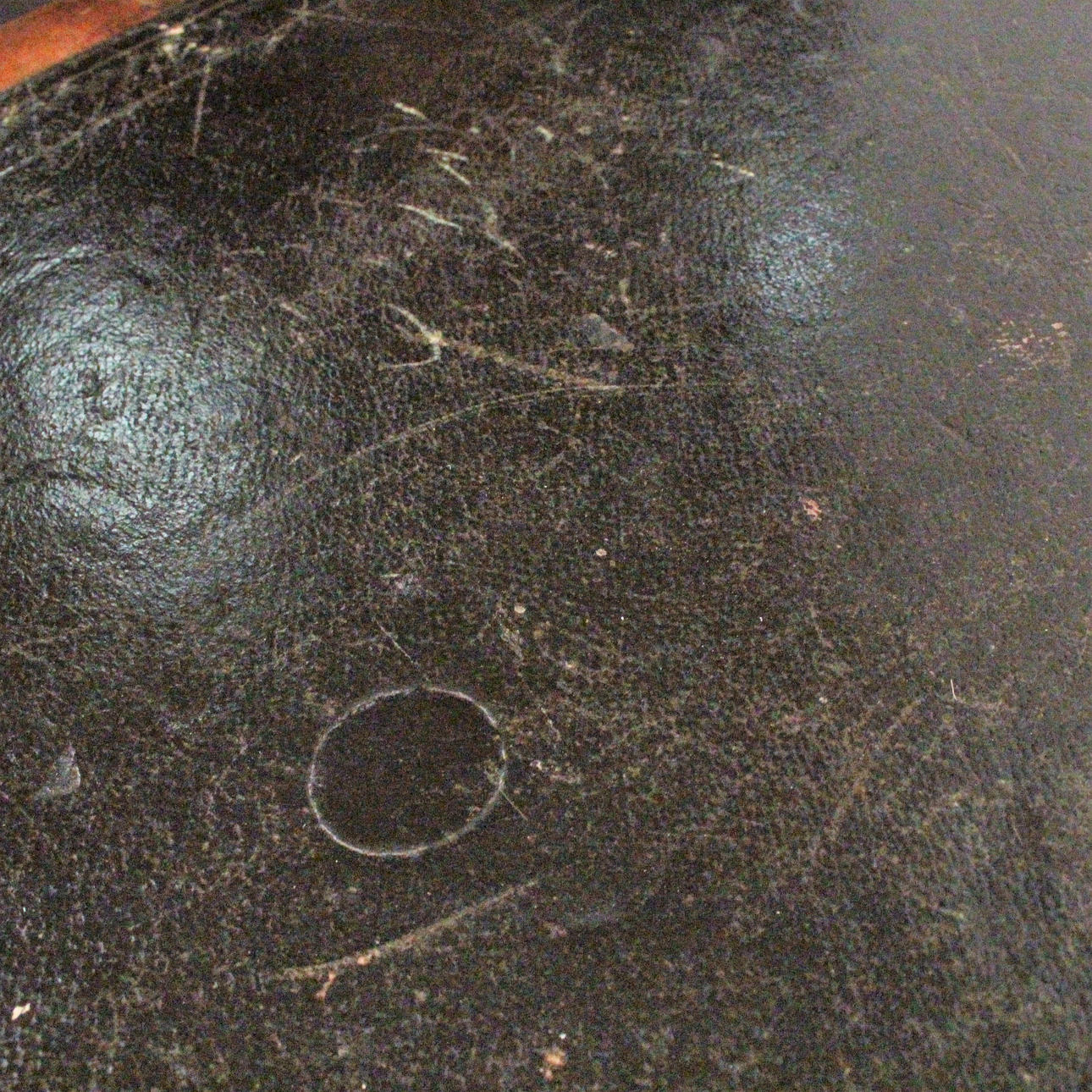 Material: dunkles Holz, Leder, textiles Flachgewebe, Posament