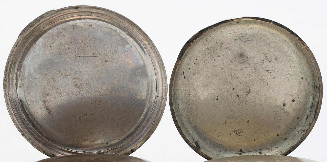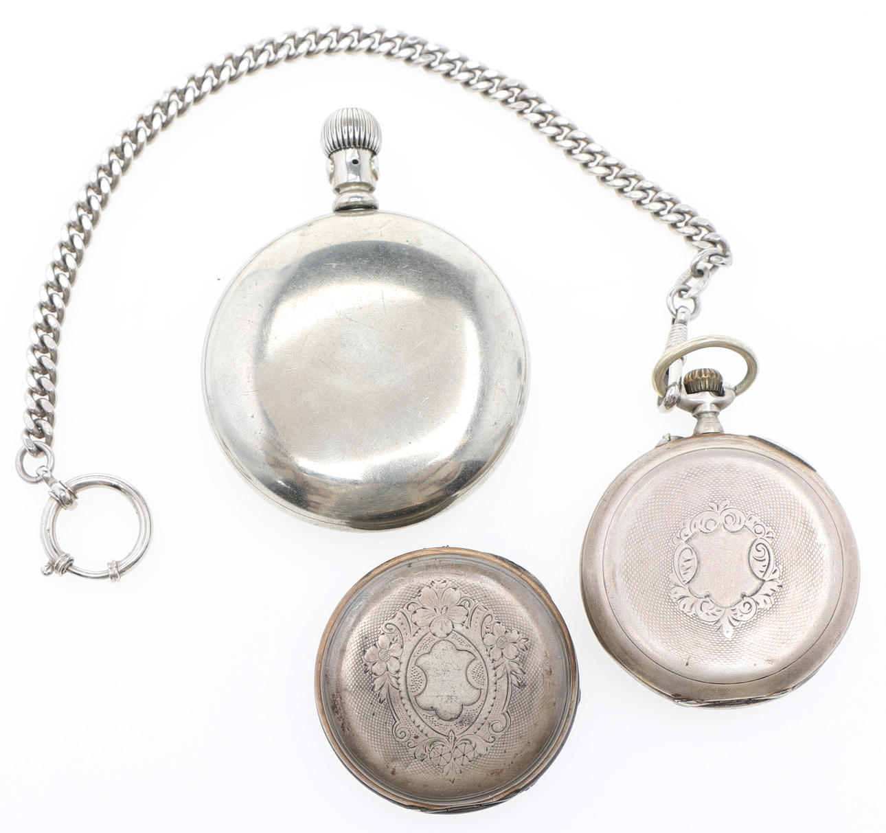 Taschenuhr, Weißmetall, Elgin, USA, Durchmesser ca. 58 mm Taschenuhr, Silber, Deutschland, Durchmesser ca. 49 mm Taschenuhr, Neusilber, Zifferblatt gemarkt LJ Sihlander Sölvesborg.