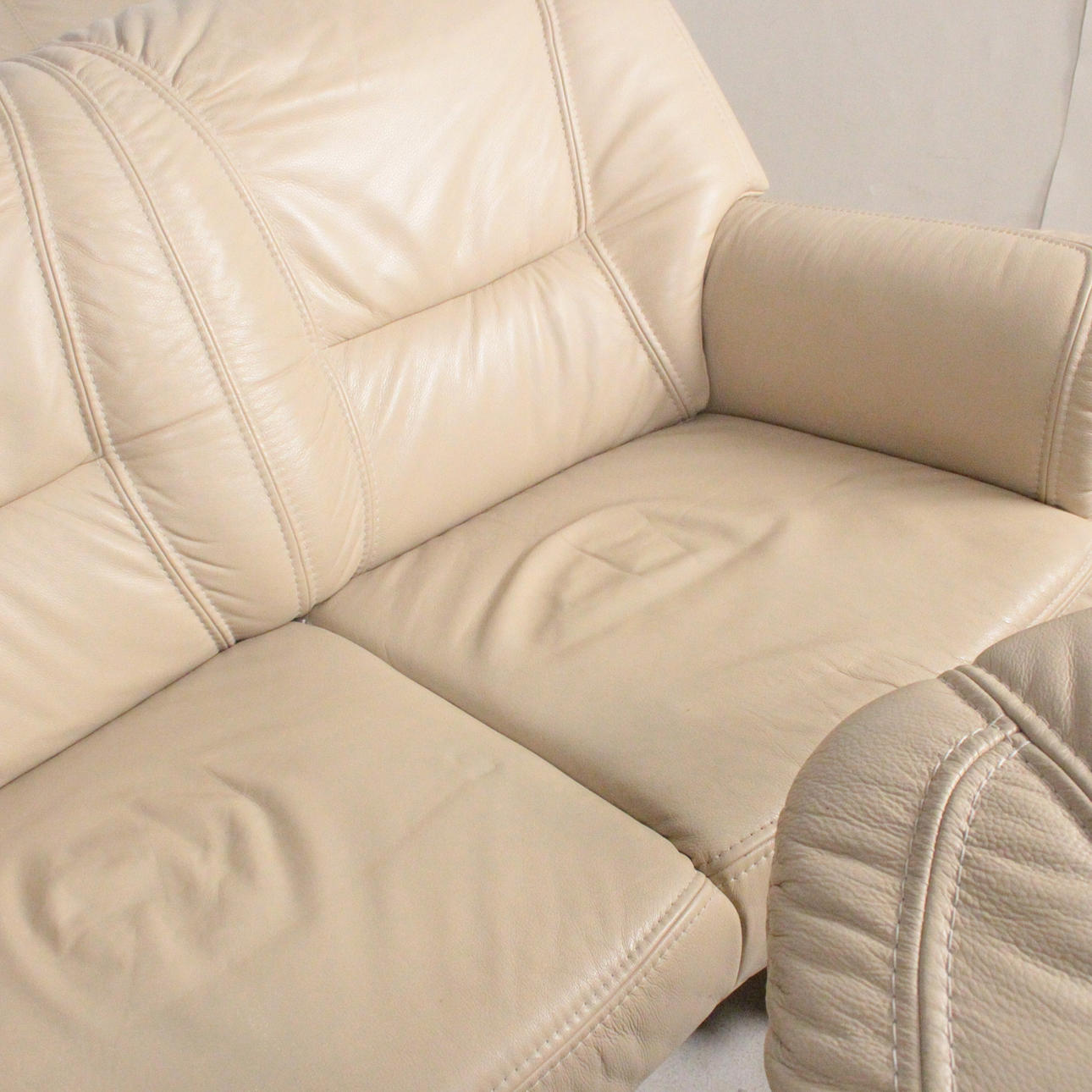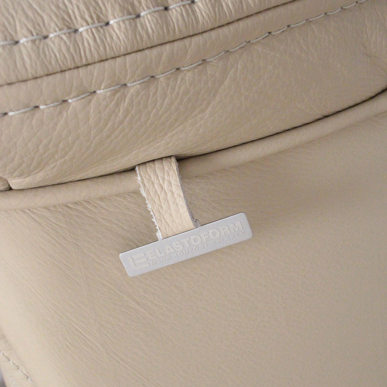 Material: Leder in Beige, Schaumstoff, Unterkonstruktion aus Holz
