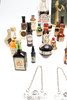 Dazu gehören verschiedene alkoholische Getränke wie Whiskys, Liköre und andere. Einige in ihren Originalkartons/Dosen. Zusammen mit drei Spiritusetiketten aus Metall. Eine Menge.