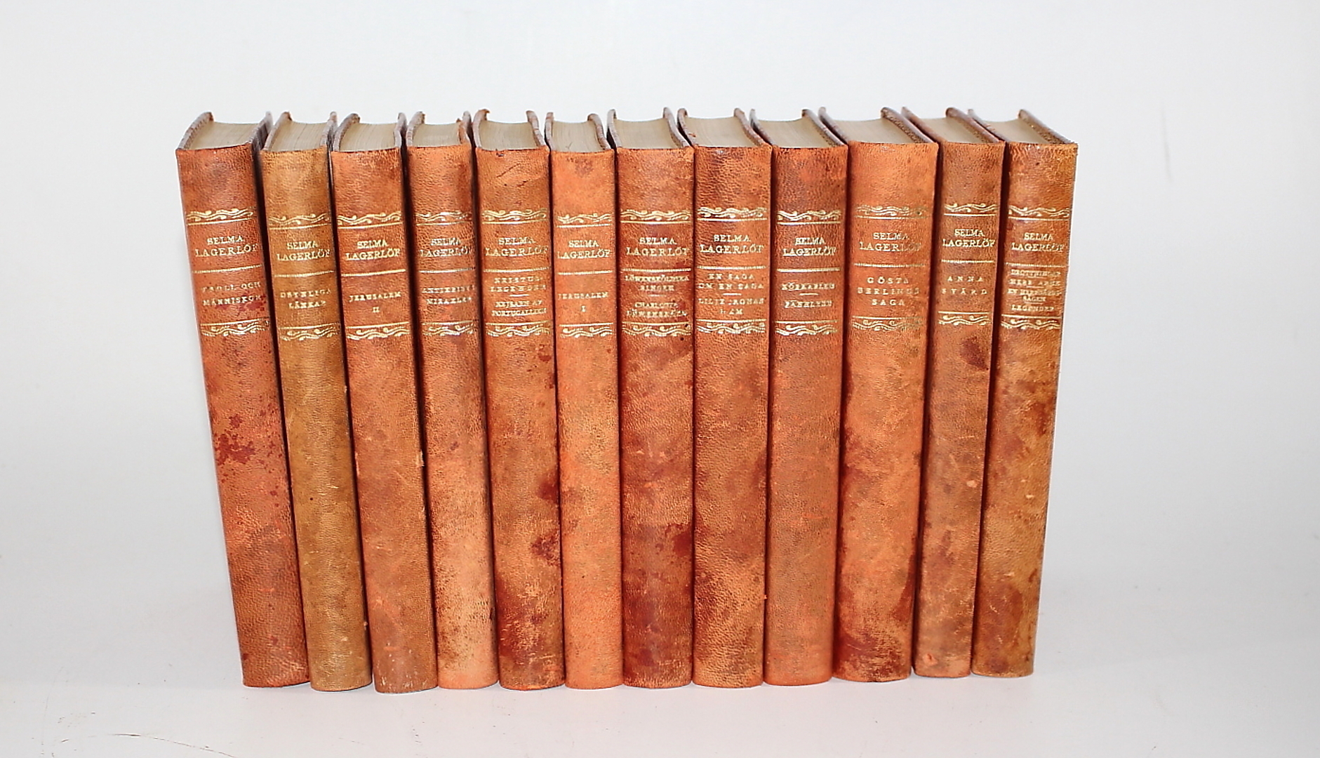 293747. BÜCHER, 12 Stück, Ledereinband, Semla Lagerlöf.