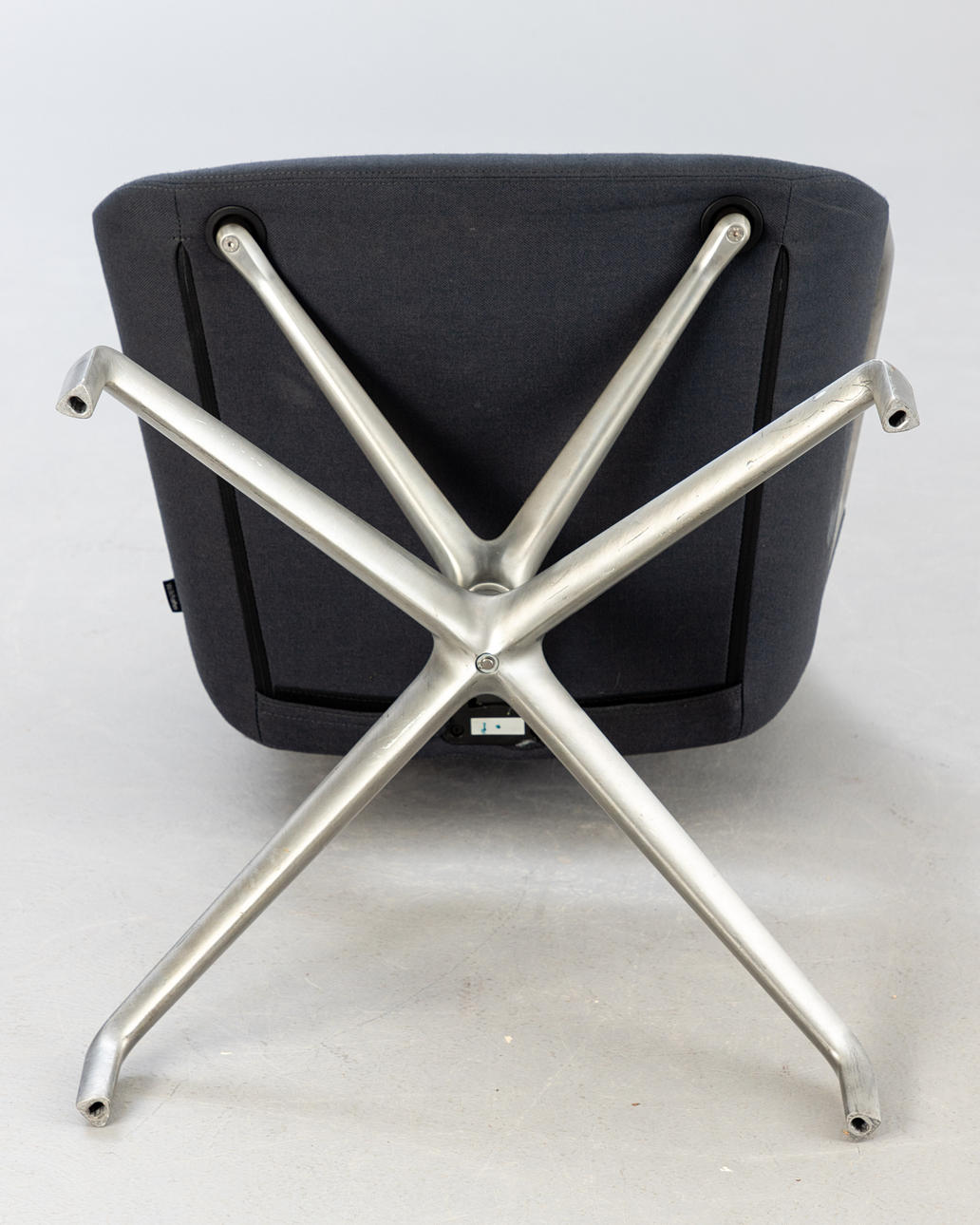 Konferenzsessel 'Graph 301/5' von Wilkhahn. Gestell aus Aluminium, vierstrahliger Fuß, Sitzschale aufgepolstert und mit Stoff bezogen.
