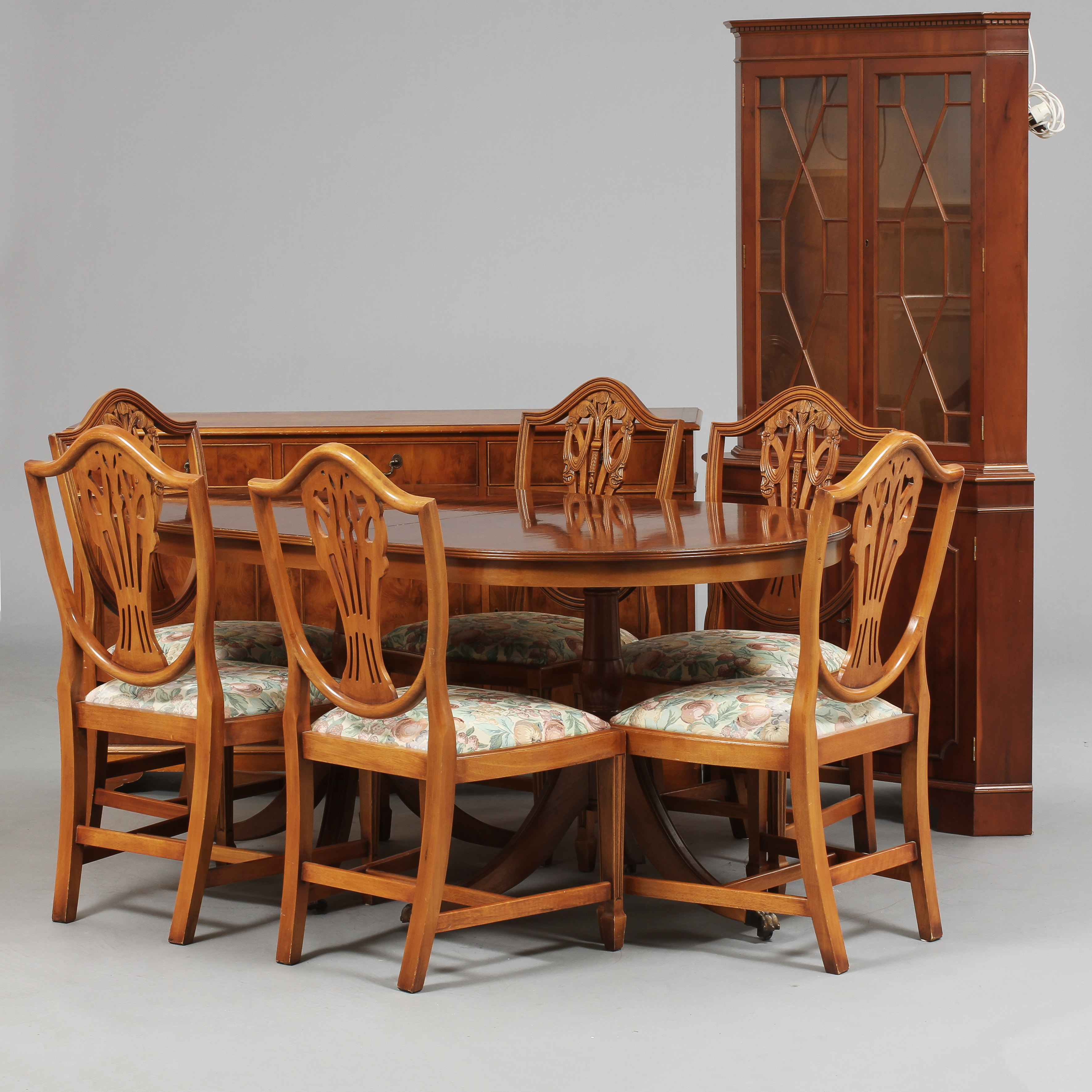 294505. ESSZIMMERMÖBEL, 9 Stück, Eibe, 1900er Jahre.