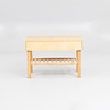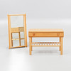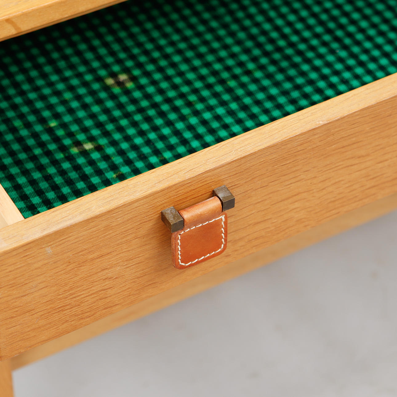 Eiche, Kork und Leder. Kommode, Länge 80, Breite 40, Höhe 55 cm. Spiegel, Höhe 89 cm.