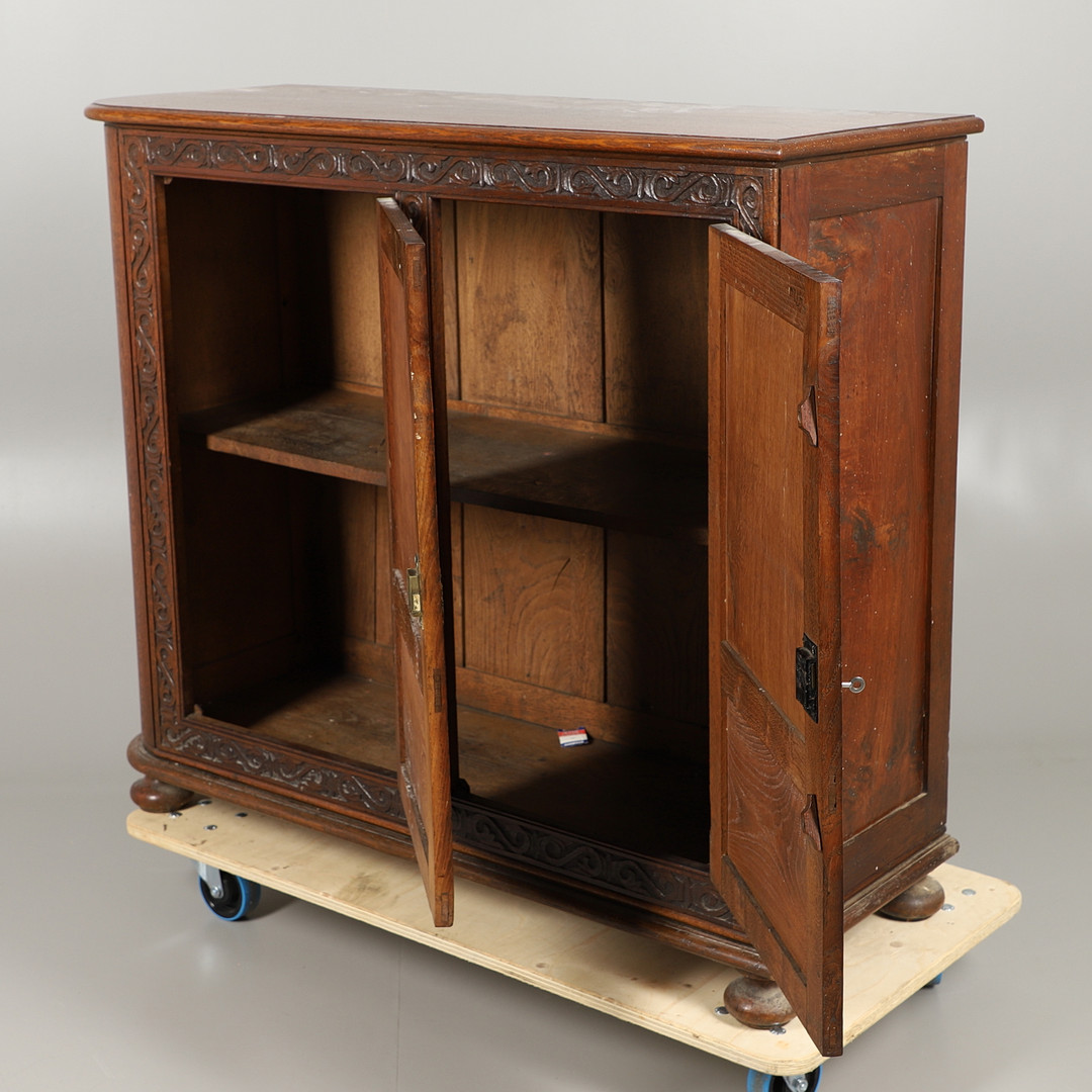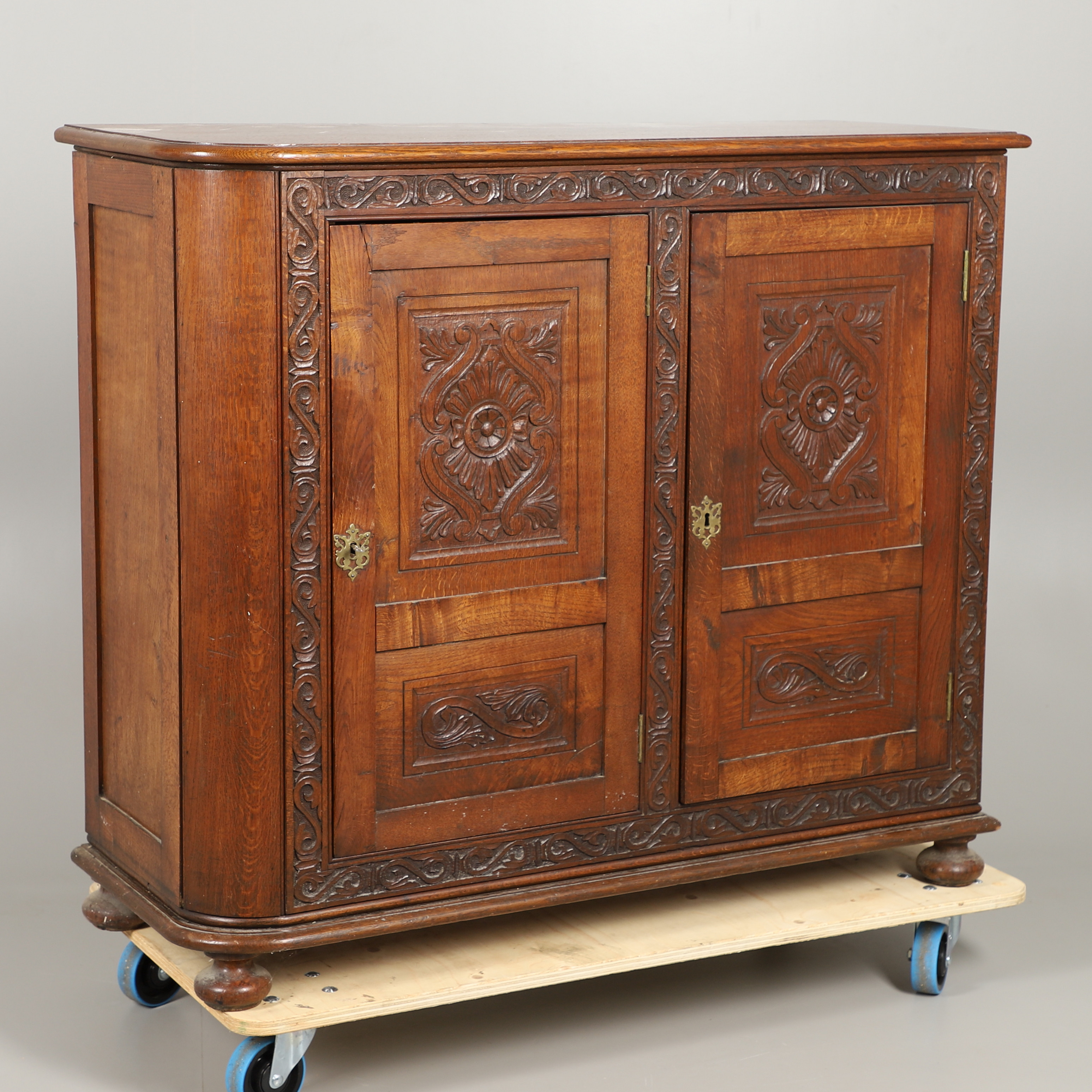 2950886. EIN MODERNER SCHRANK AUS GESCHNITZTER EICHE.