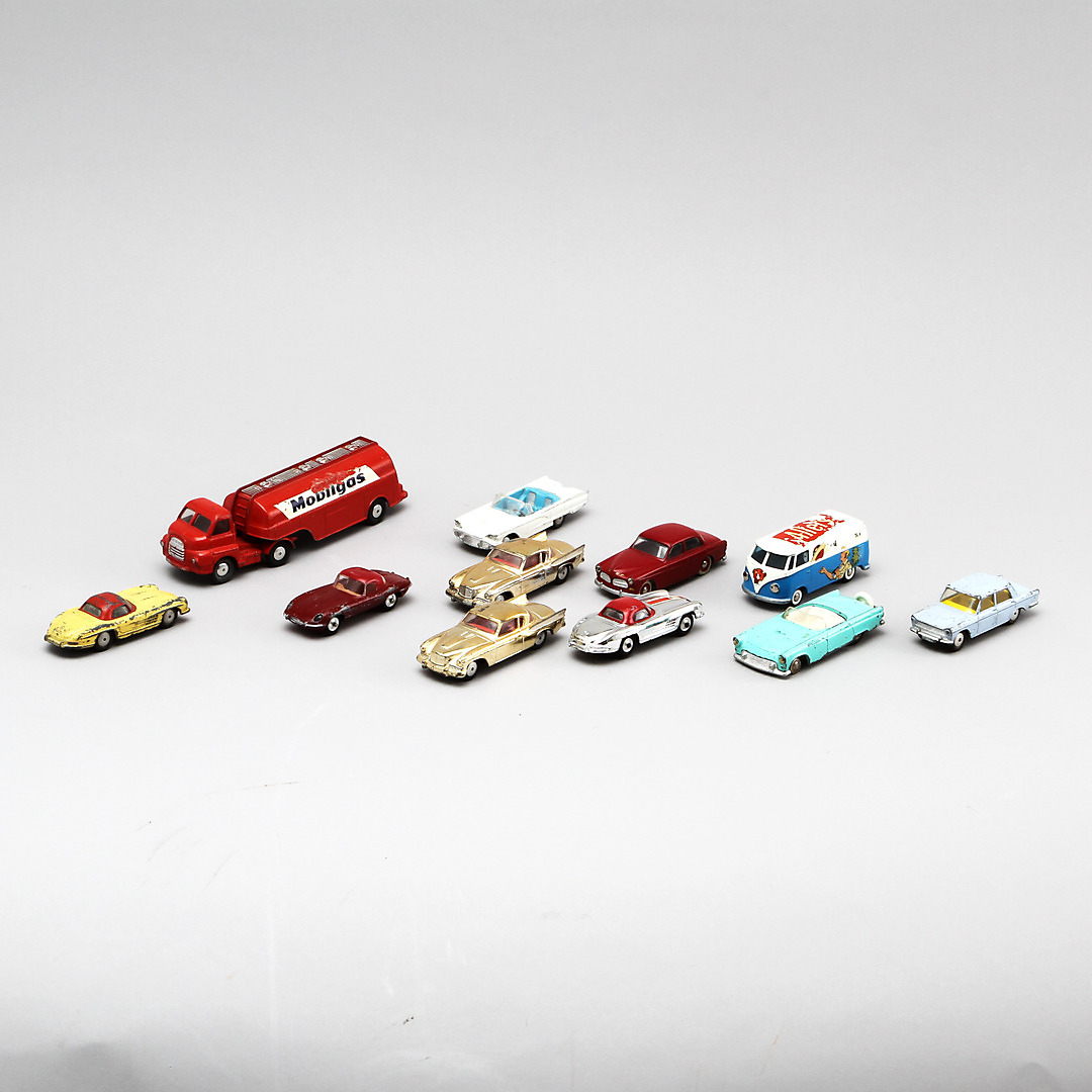 295121. MODEL CARS, 11 Stück, Corgi Toys und Tekno.