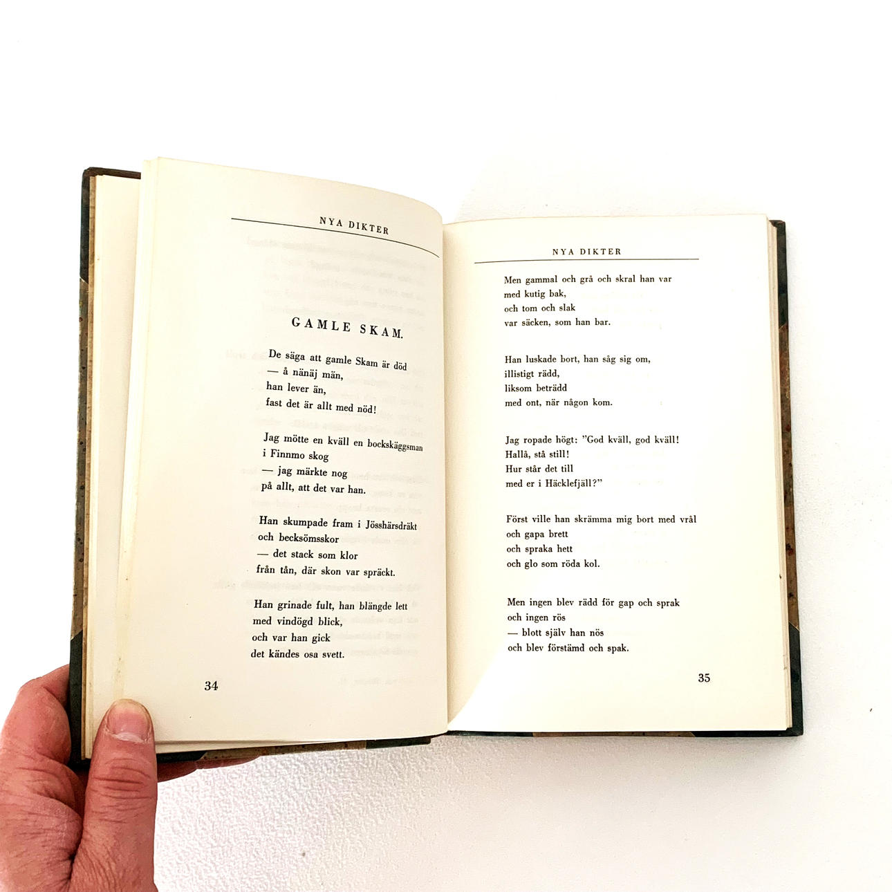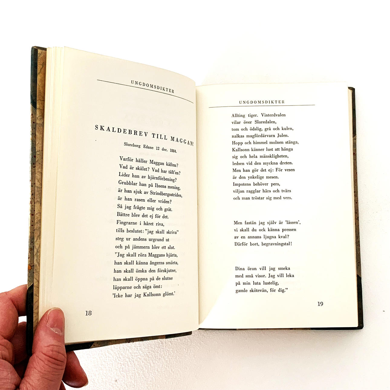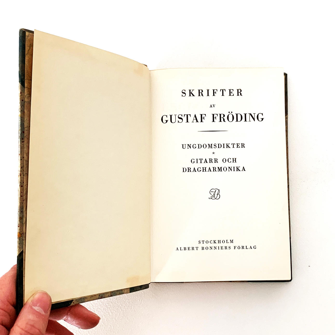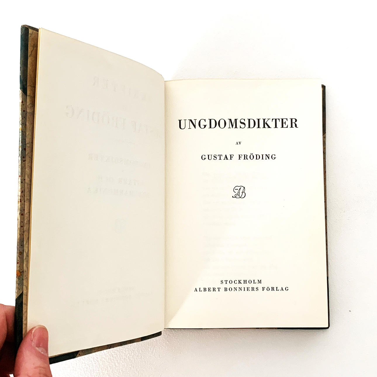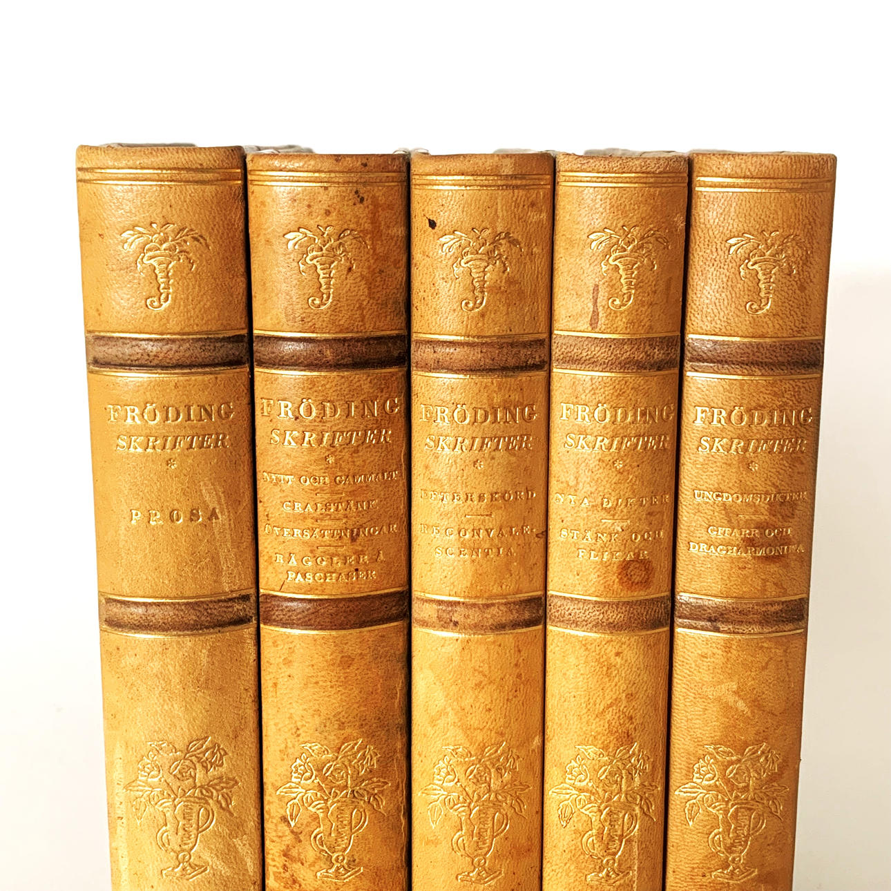 5 halbledergebundene Bände mit schwedischer Poesie von Gustaf Froding, ca. 1935.