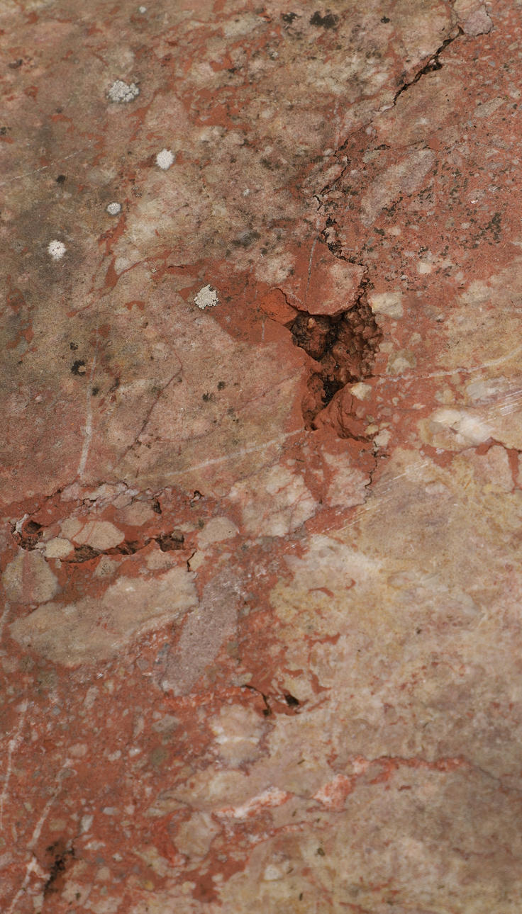 Schwerer Schaden an Steinplatte. Leichterer Oberflächenrost. Schmutz.