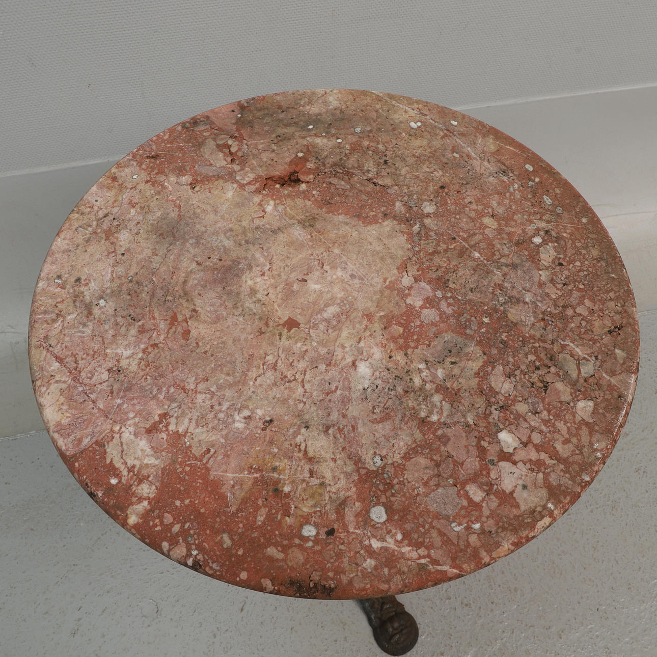 GARTENTISCH, Gusseisen, mit Steinplatte.