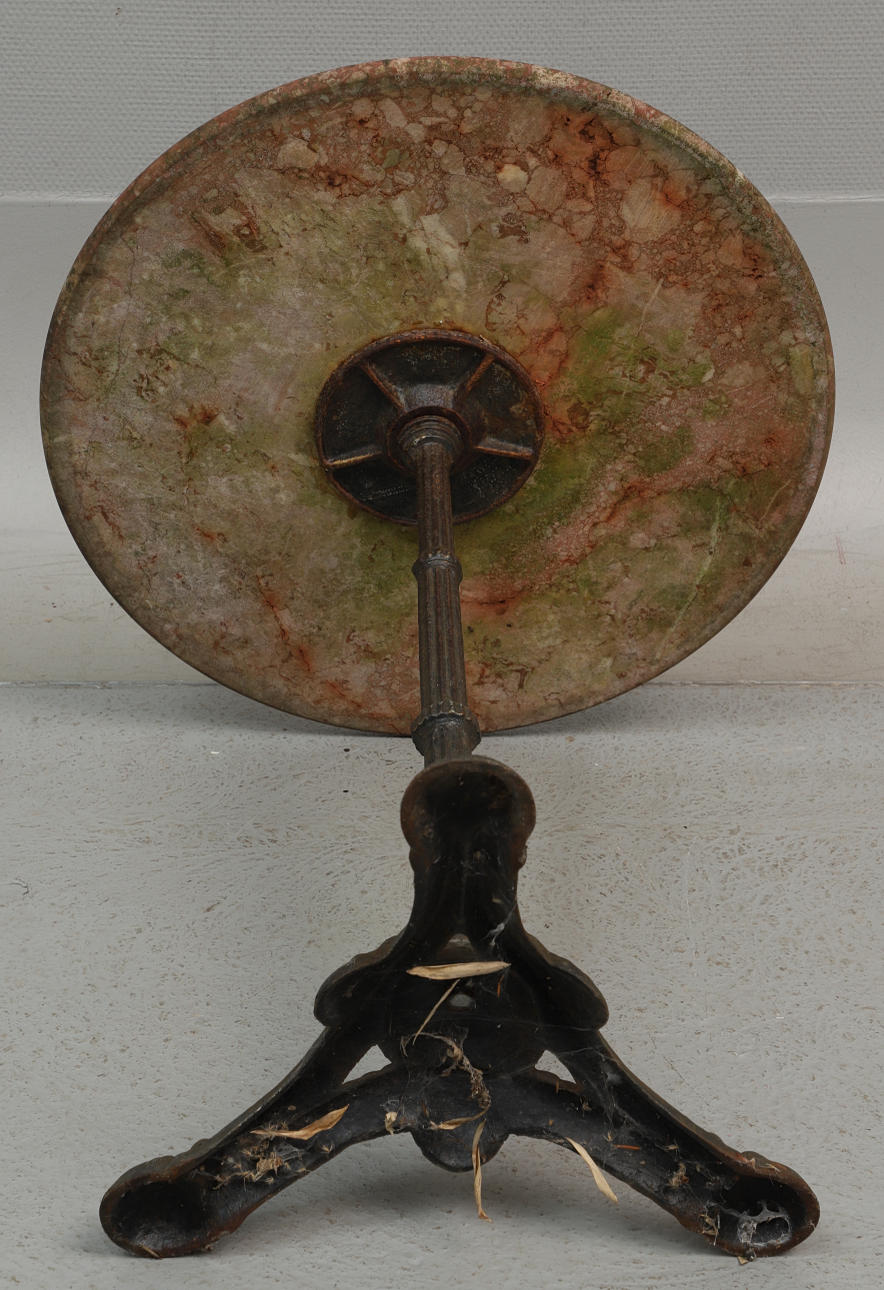 2967706. GARTENTISCH, Gusseisen, mit Steinplatte.